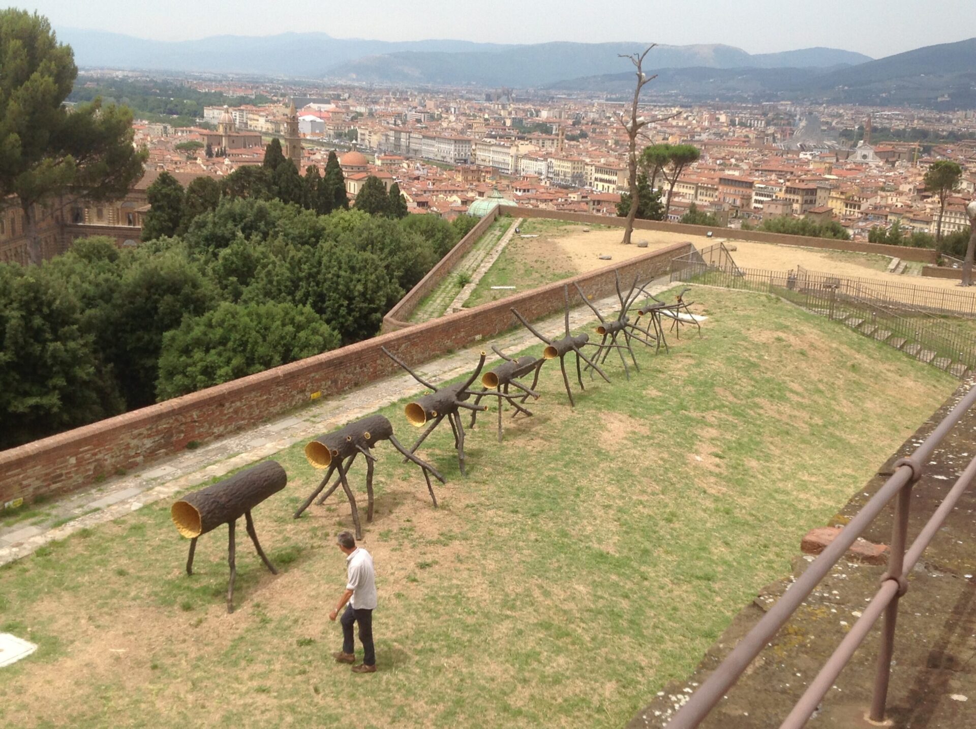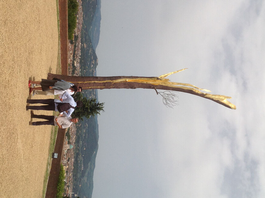 Legno e bronzo tra arte e natura Dal piazzale, dalle terrazze e dai bastioni del Forte le sculture di Penone si alzano sottili verso il cielo punteggiando il celebre sky-line e si distendono poi lungo le pendici della collina raggiungendo lo spiazzo dell’Anfiteatro e la Grotta del Buontalenti. Ecco dunque i lunghi alberi di legno e bronzo, le ‘Idee di pietra’ o ‘In bilico’, dove grandi macigni si trovano posati come un nido di pietra tra i rami di grandi alberi in bronzo, le ‘Anatomie’ in marmo, la terracotta e i materiali reinventati che punteggiano le opere, gli alberi che crescono in senso contrario e dalle cui radici spunta un ramoscello di olivo. E poi ‘Luce e ombra 2011’, un albero in bronzo con elementi in oro e granito montato un mese fa al centro dell’Anfiteatro, e ‘Biforcazione’, un tronco di bronzo con innestato il calco del braccio destro dell’artista che funge da bacino di scolo per uno zampillo d’acqua. Commenta la Soprintendente Acidini: «A Boboli le opere di Penone vivono una immersione, una compenetrazione nella natura dove gli alberi veri sono quasi fratelli di quelli artificiali. Ma si integrano anche con le opere d’arte sparse nei viali, come le sculture di Giambologna e Danti”». «Il giardino le ha abbracciate – sottolinea ancora con soddisfazione il direttore Matteo Ceriana – e i visitatori quasi non notano la differenza fra le opere permanenti dei viali e le nuove installazioni». L’evento è curato da Once – Extraordinary Events ed è stato realizzato grazie ai proventi del Gioco del Lotto.
