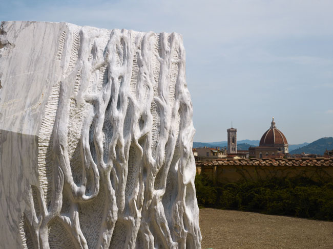 «Firenze è un’orchestra dove tutti devono suonare lo stesso spartito». Con questa frase programmatica, quasi una definizione d’intenti del suo mandato, il sindaco di Firenze Dario Nardella ha presentato ‘Prospettiva vegetale’, l’attesa mostra di Giuseppe Penone che riapre la stagione espositiva del Forte Belvedere (fino al 5 ottobre – orario: al Forte tutti i giorni 10-20, chiuso lunedì, a Boboli tutti i giorni 8.15-19.30 – info: 055.217704). Accanto a lui il maestro Penone, tra i protagonisti internazionali dell’Arte Povera, e la Soprintendente al Polo Museale Fiorentino Cristina Acidini. Lo spartito a cui Nardella fa riferimento è infatti quello della collaborazione fra Comune (proprietario del Forte) e Soprintendenza, un accordo che in futuro è destinato a ripetersi e che in questo caso spalanca a fiorentini e turisti le porte di una passeggiata davvero speciale: quella che dal Forte scende fino a Palazzo Pitti attraverso il Giardino di Boboli, anch’esso punteggiato dalle opere del maestro.