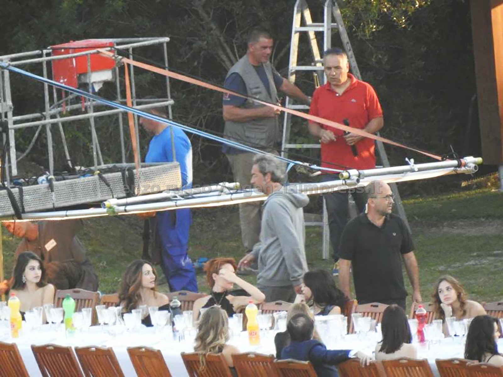 La location serve a ricostruire le cene e le feste private di Villa Certosa in Sardegna, come si può ben vedere dalle immagini che ritraggono tante ragazze in abiti eleganti, rigorosamente in nero, tacchi a spillo e scollature vertiginose.