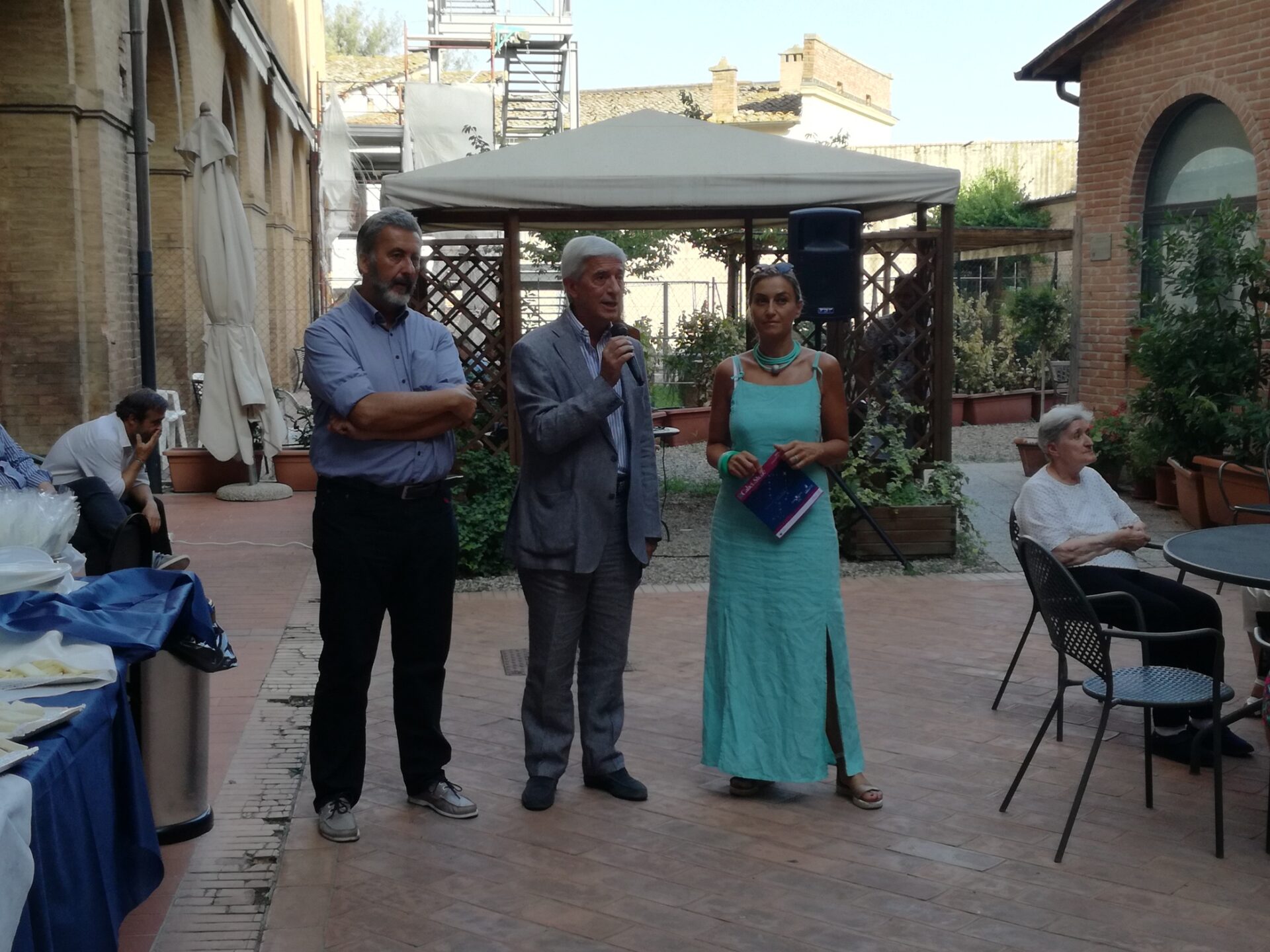 Musica allegra, buon vino del territorio senese e un’atmosfera di cordialità hanno caratterizzato l’appuntamento di anteprima di Calici di Stelle 2017 che, come lo scorso anno, è stato celebrato al Campansi alla presenza dell’assessora al Turismo, Sonia Pallai, del presidente dell’ASP “Città di Siena”, Carlo Rossi, e del vicedirettore dell’associazione nazionale “Città del Vino”, Paolo Corbini.