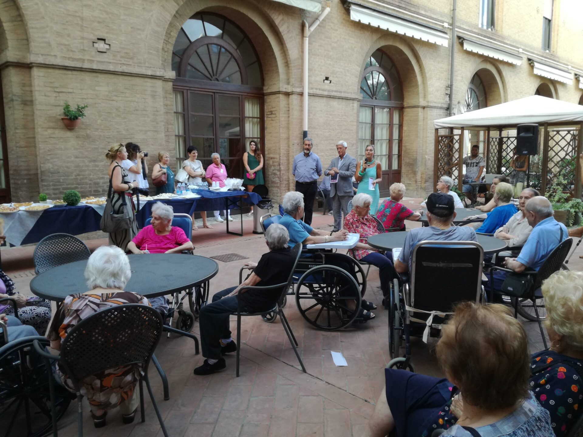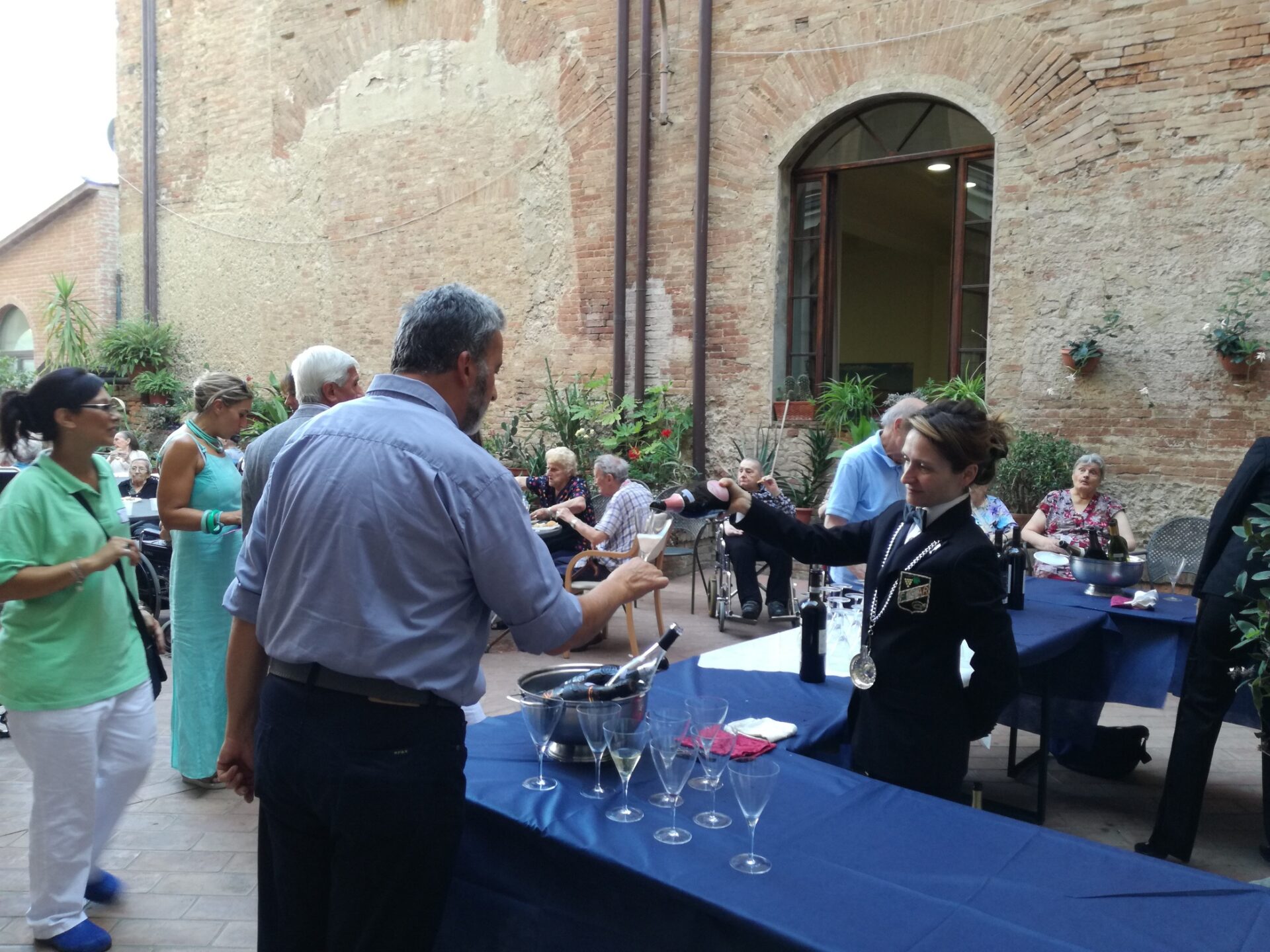 «Con questa visita – ha affermato Sonia Pallai – intendiamo ribadire l’attenzione e la vicinanza agli ospiti del Campansi, coinvolgendoli nel clima di festa che caratterizza le edizioni di Calici di Stelle. Un sentito ringraziamento a nome di tutta l’Amministrazione comunale per la cooperativa Mediterranea, che ha offerto il buffet, e per la Fisar che ha curato la somministrazione del vino. Quella di oggi è una vera e propria anteprima dei festeggiamenti di domani che coinvolgeranno tutta la città». «Un appuntamento che, dallo scorso anno – ha aggiunto Carlo Rossi – è diventato una piacevole tradizione, un momento di allegra convivialità per i nostri ospiti, che ricevono “a domicilio” la visita di tutta la città, attraverso i suoi rappresentanti istituzionali, condividendo le emozioni che domani animeranno Calici di Stelle a Siena». La serata è stata accompagnata dalla musica dal vivo con Alice Spinelli, Mimmo Buttacavoli e Niccolò Pagliai. Oggi la giornata clou di Calici di Stelle con iniziative diffuse a Palazzo Pubblico, Palazzo Sansedoni e nei giardini della Società di Camporegio, in San Domenico.