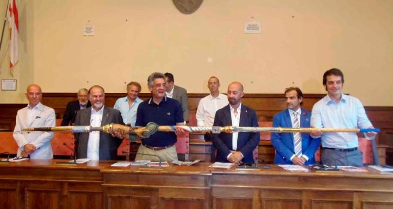 L’estrazione delle carriere Nella serata di ieri, invece, c’è stata la tanto attesa cerimonia di estrazione delle carriere, il rito che stabilisce l’ordine di corsa dei cavalieri alla Giostra. Porta del Foro è il quartiere che aprirà il Saracino in notturna di sabato prossimo. La sorte ha voluto che ad estrarne il nome sia stato un nipote d’arte: Alessandro Chiericoni, nipote dell’araldo Gian Francesco Chiericoni, voce storica della Giostra del Saracino. Subito dopo Porta del Foro andranno in campo i gialloblu di Porta Santo Spirito. Terzi nelle carriere i campioni in carica di Porta Sant’Andrea, con chiusura della lizza a Porta Crucifera. Dopo l’estrazione delle carriere la cerimonia è proseguita con il trasposto della Lancia d’oro in Cattedrale, dove sarà custodita fino al giorno della Giostra.