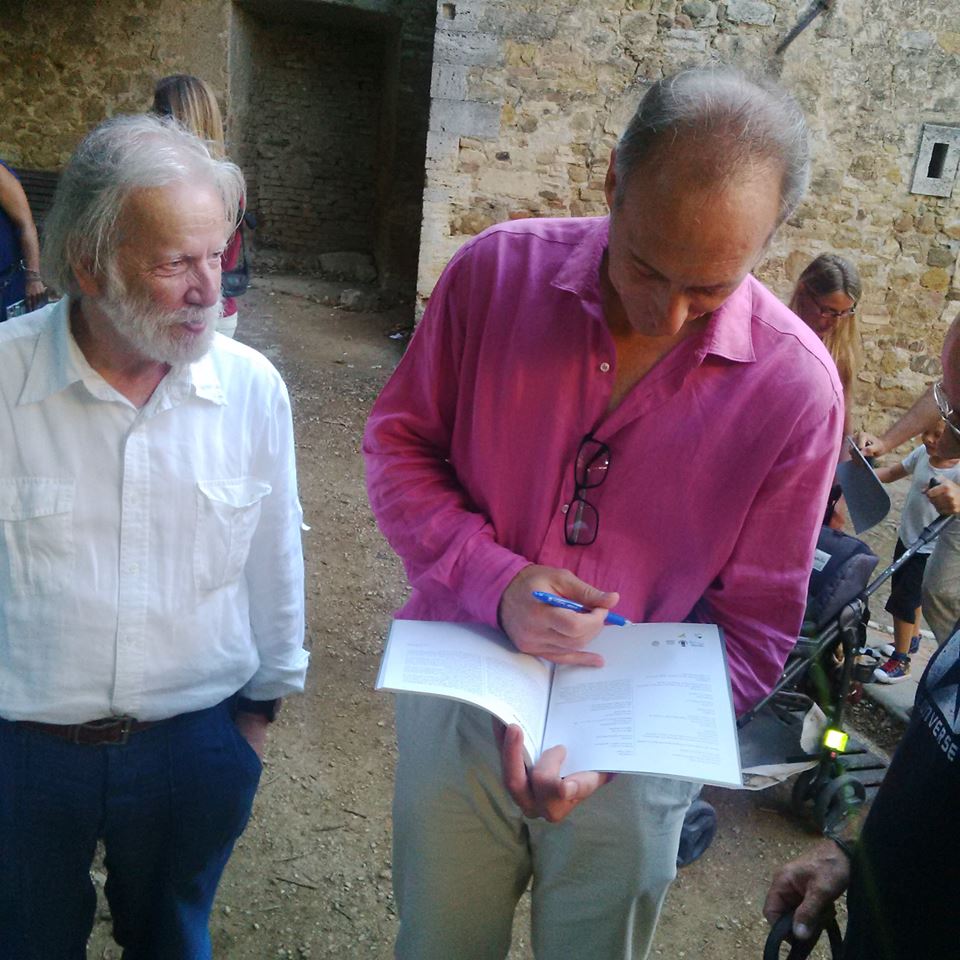 Applausi, strette di mano e autografi per Justin Peyser, scultore statunitense, protagonista della 45esima edizione di Forme nel Verde inaugurata agli Horti Leonini di San Quirico. Nelle foto, l’artista presenta l’accattivante percorso espositivo accompagnato dall’assessore alla cultura della cittadina valdorciana, Ugo Sani.
