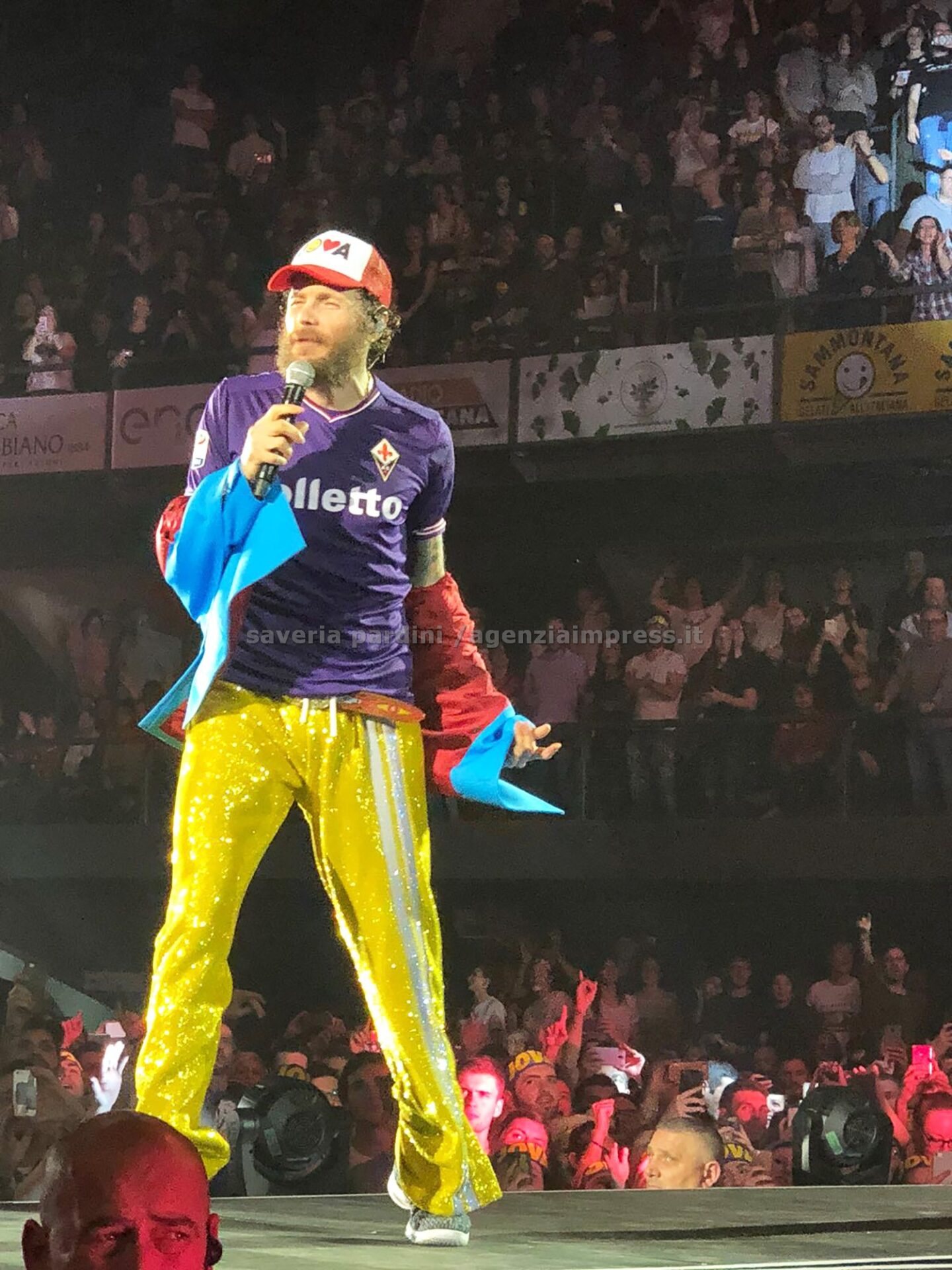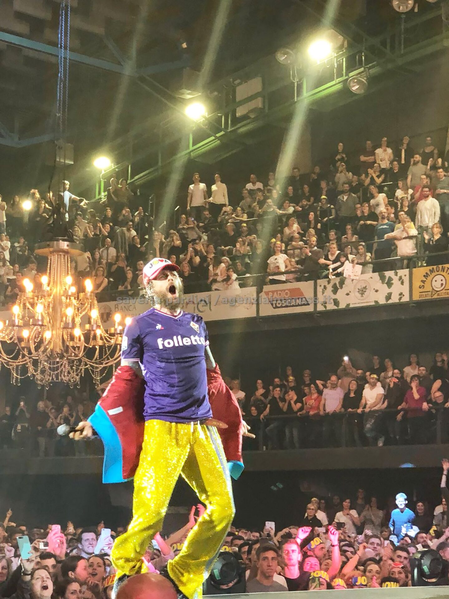 Uno dei momenti più intensi ed emozionanti del concerto di Jovanotti, ieri notte al Mandela forum. Lorenzo indossa la maglia viola del capitano Davide Astori, scomparso improvvisamente dieci giorni fa, e intona “Terra degli uomini”.