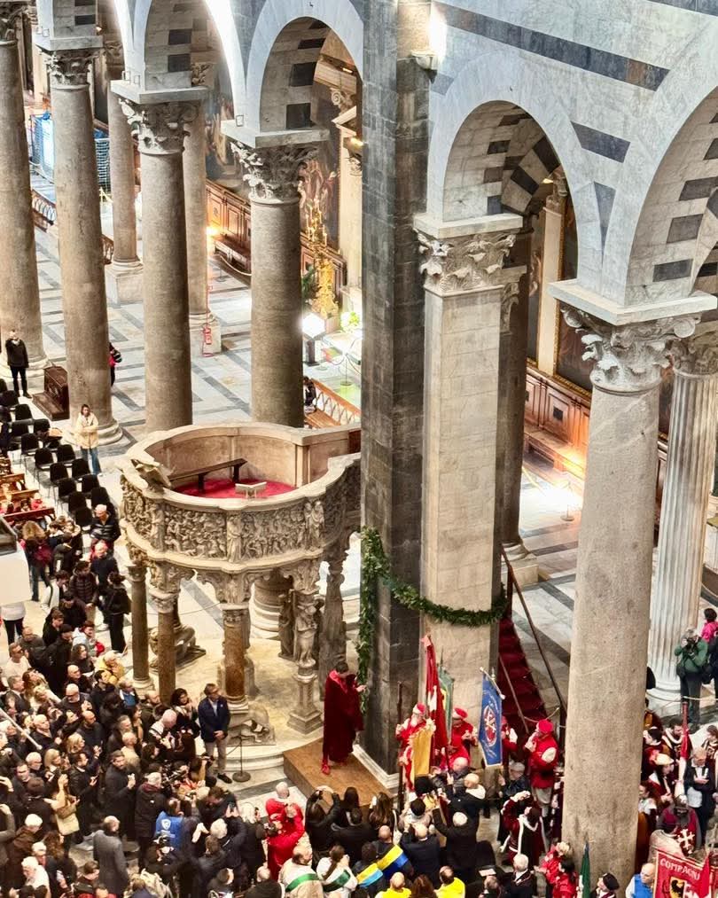 “Il raggio di sole nella Cattedrale – aggiunge l’assessore alle tradizioni storiche, Filippo Bedini – è particolarmente significativo oggi, in una giornata inizialmente nuvolosa: lo interpretiamo come un buon auspicio per l’anno 2027 dei pisani.