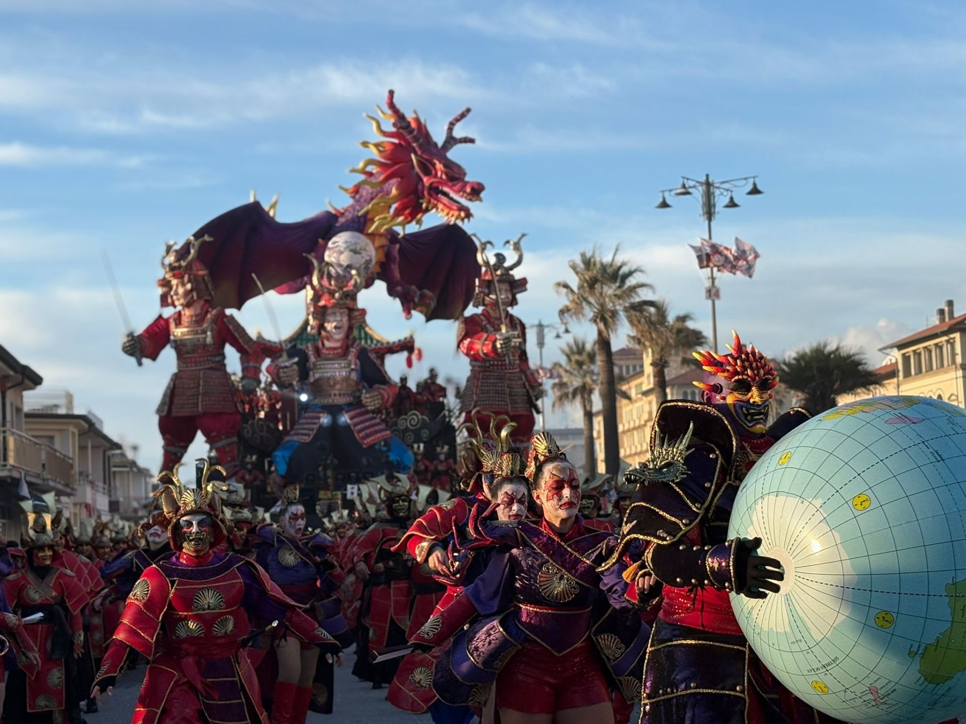 Nella giornata di ieri hanno sfilato le due enormi opere in cartapesta “I samurai del potere” e “La gallina dalle uova d’oro” (in foto), raffiguranti le grande potenze che controllano e regolano il nostro mondo. La sapienza degli artisti e dei maestri cartapestai è proprio quella di saper raccontare, come in questo caso, il mondo di oggi e i grandi temi della società.