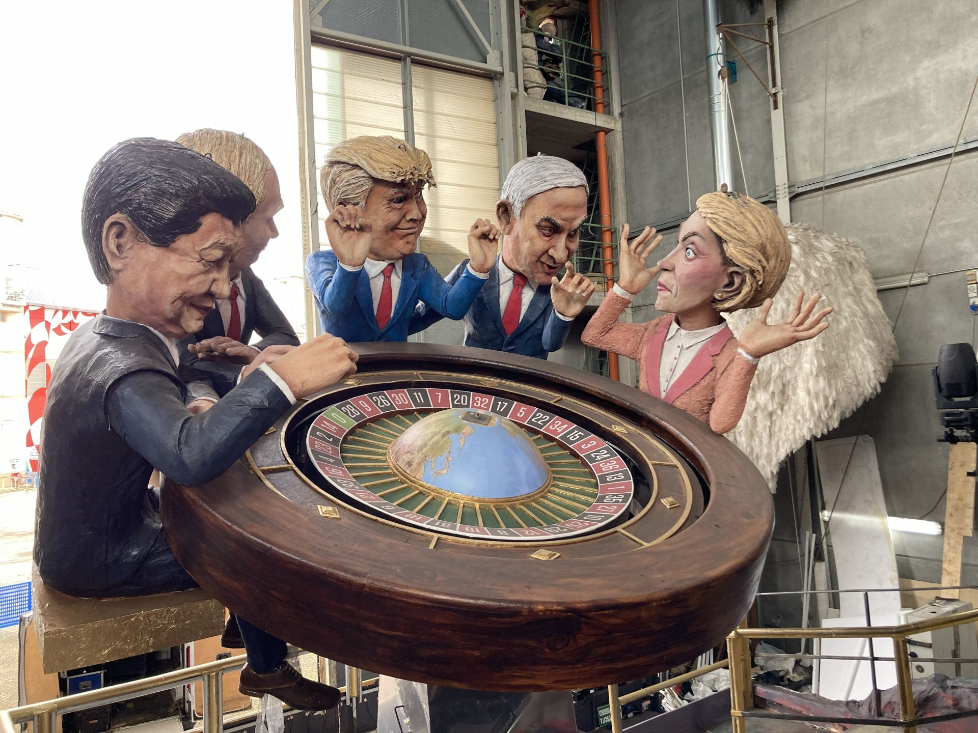 La nostra è una denuncia contro la sua campagna irrazionale e crudele anti-immigrazione, tornata drammaticamente attuale con i fatti degli ultimi giorni: le persone ammazzate per strada, aggredite senza alcun rispetto per i diritti umani. Siamo andati così oltre il limite che perfino Bruce Springsteen ha rilasciato mercoledì una canzone (“Street of Minneapolis”) contro la violenza di Stato avallata da Trump”.  Che compare, infatti, in più di una costruzione allegorica. In varie vesti, per rispettare la regola aurea dell’allegoria: il camuffamento. Così, ad esempio, nel carro “I samurai del potere” di Luigi Bonetti, il presidente degli Stati Uniti è rappresentato come un samurai, impegnato, con Putin (zar di Russia) e Xi Jinping, presidente della Cina, che controlla le banche americane e l’economia di mezzo mondo. Invece, sul carro della brigata Lebigre-Roger, i tre potentissimi sono seduti a un tavolo da roulette – titolo della costruzione “Gran Casino-Rien ne va plus” – insieme a Netanyahu e Ursula Von der Layen, la presidente di quell’Europa inutile a contrastare le guerre in atto, a prevenire quelle future.