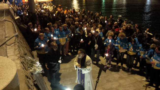 La corona di fiori gettata in mare per ricordare le vittime