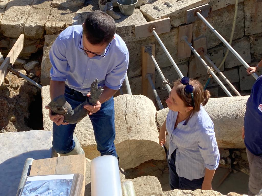 estituite dal Bagno Grande, un museo al quale si aggiungerà in futuro un vero e proprio parco archeologico. Luigi La Rocca, direttore generale per l’archeologia, condivide l’entusiasmo e sottolinea “l’importanza del metodo usato in questo scavo”, che come è stato per le scoperte più recenti di Pompei, anche qui ha visto all’opera “specialisti di ogni disciplina, dagli architetti ai geologi, dagli archeobotanici agli esperti di epigrafia e numismatica”. Realizzate con tutta probabilità da artigiani locali, le 24 statue appena ritrovate – spiega Tabolli affiancato dal direttore dello scavo Emanuele Mariotti e da Ada Salvi della