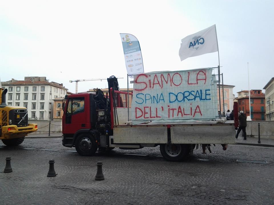 Pressione istituzionale per cambiare la politica economica Alla manifestazione hanno aderito, in segno di solidarietà, anche i presidenti provinciali delle Cna di Lucca e Massa Carrara e il vicepresidente nazionale Andrea Di Benedetto. Presente anche il Comune di Pisa con l’assessore alle attività produttive, David Gay: «Dai settori in difficoltà attiva una forte richiesta per una radicale riforma della pubblica amministrazione che favorisca le imprese e la ripresa quando si presenterà – ha detto – Cosa sta facendo  il Comune? Cerca di semplificare, portare investimenti sul territorio, come fatto con i Piuss, e di tenere un bilancio sano così da poter rimanere in regola con i pagamenti. E fare pressioni istituzionale perché cambi la politica economica e si allenti il patto di stabilità». Il corteo questa mattina ha provocato disagi al traffico cittadino in prossimità del centro: i Lungarni sono infatti stati chiusi e nelle strade d’accesso alla città si sono registrate forti rallentamenti e code.