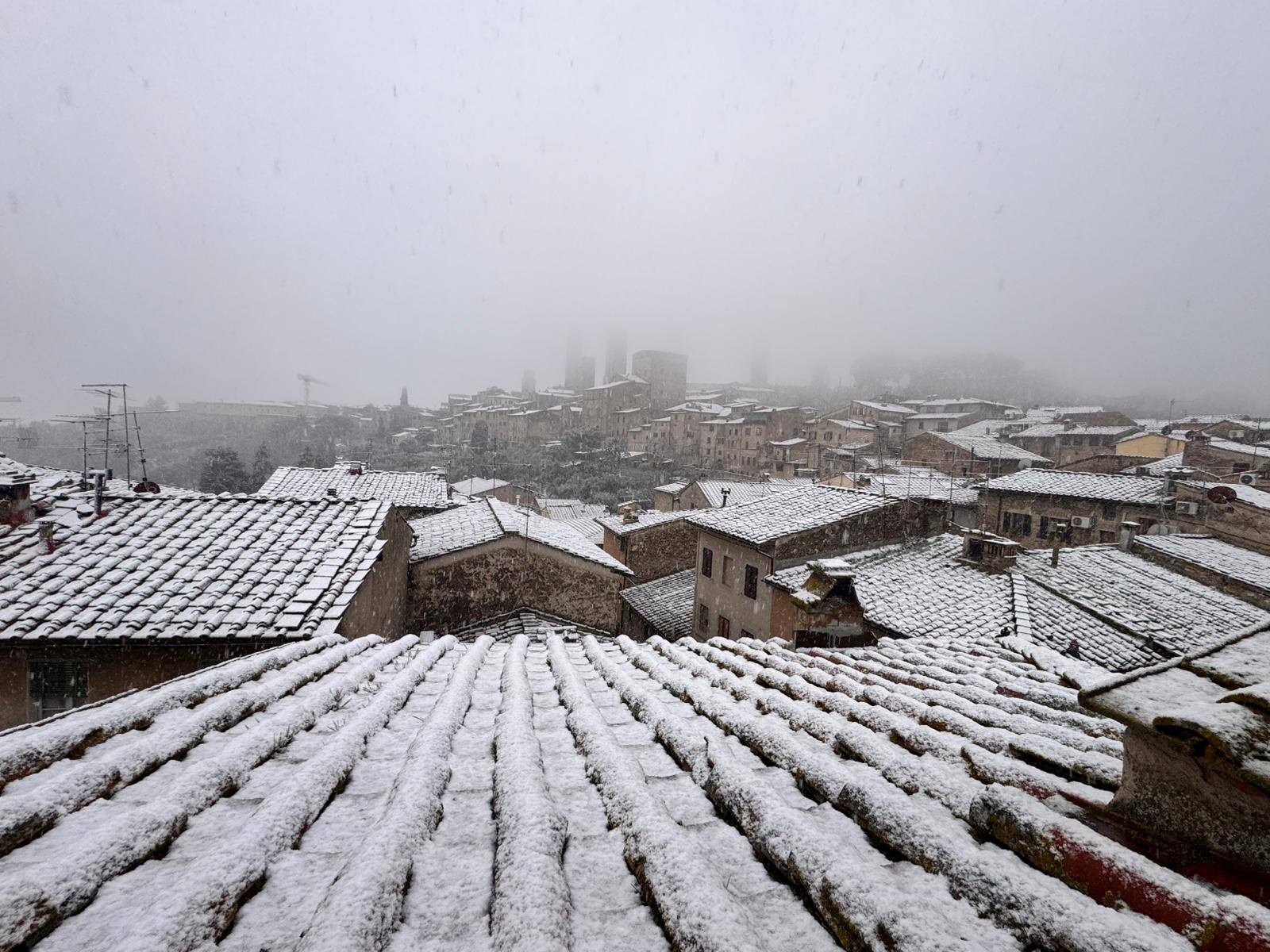 La neve ha raggiunto anche aree più centrali e meridionali: segnalazioni di neve a San Gimignano, dove i fiocchi hanno ricoperto le celebri torri medievali e i vigneti circostanti, creando un paesaggio da cartolina invernale nonostante gli accumuli limitati.