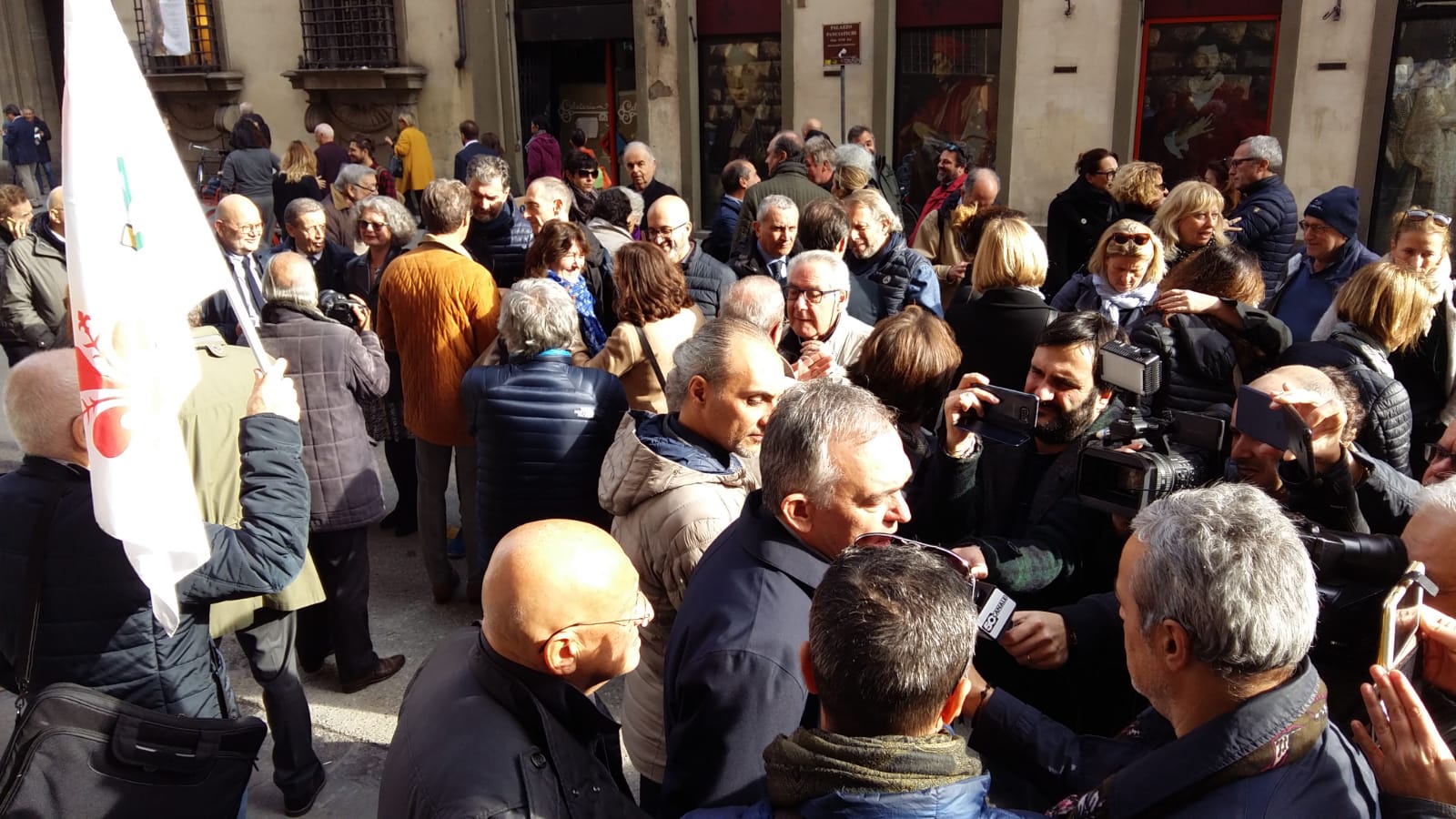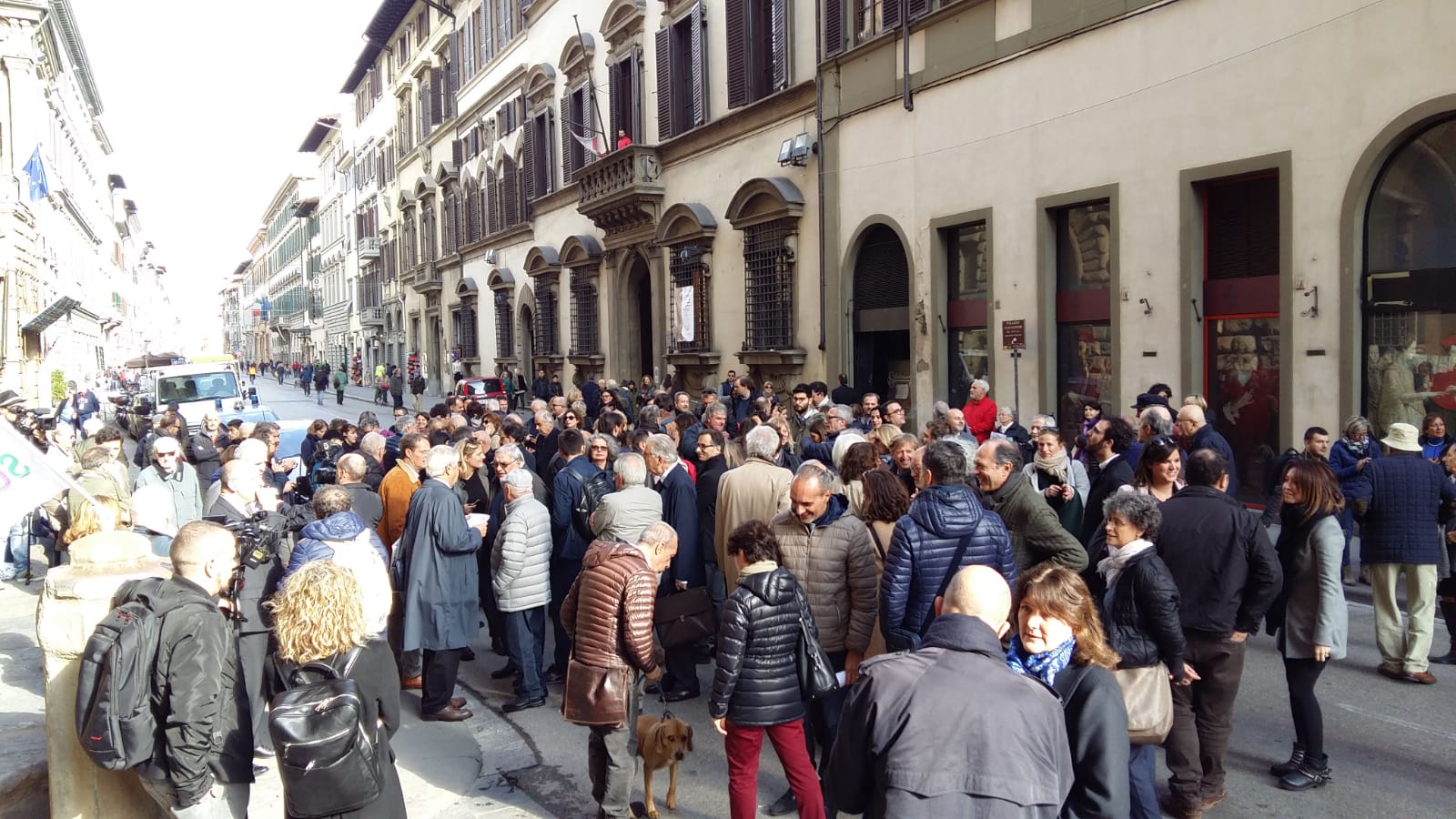 Associazione stampa Toscana e Consiglio dell’Ordine dei giornalisti della Toscana hanno organizzato per oggi un flash mob, #giùlemanidall’informazione, davanti alla Prefettura di Firenze in via Cavour, per «rispondere alle offese e agli attacchi portati negli ultimi giorni all’informazione da esponenti del governo e del Movimento 5 Stelle». Tra i aprtecipanti anche il presidente della Regione Toscana Enrico Rossi che ha portato il suo sostegno ai molti giornalisti presenti.