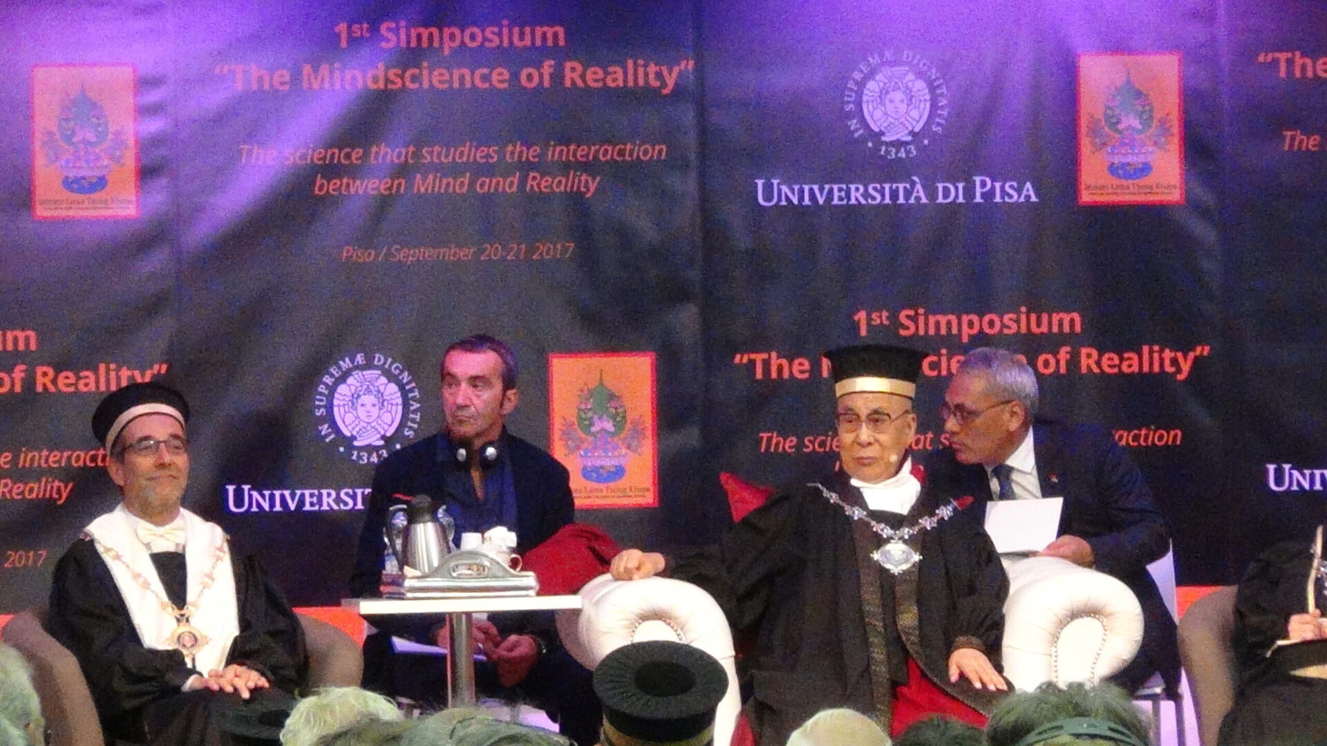 «Questo riconoscimento, che mi viene conferito da una delle più eminenti e storiche università europee, rappresenta una formidabile conferma del mio continuo sforzo di creare un ponte tra le scoperte riguardanti le scienze della mente dell’antica India e la psicologia contemporanea». Un Dalai Lama divertito e anche emozionato ha ricevuto questa mattina a Pisa, in un palazzo dei congressi gremito, la laurea magistrale honoris causa in psicologia clinica e della salute dall’ateneo toscano. Con indosso un’insolita toga accademica al posto della consueta tunica arancione il Dalai Lama ha sottolineato come «l’applicazione della mindfulness e delle pratiche riguardanti l’amorevole gentilezza e la compassione si stanno mostrando particolarmente efficaci. Le tecniche derivate dalle tradizioni contemplative vengono utilizzate con successo per trattare condizioni cliniche, quali la depressione, il dolore cronico, le dipendenze e il disturbo post-traumatico da stress».
