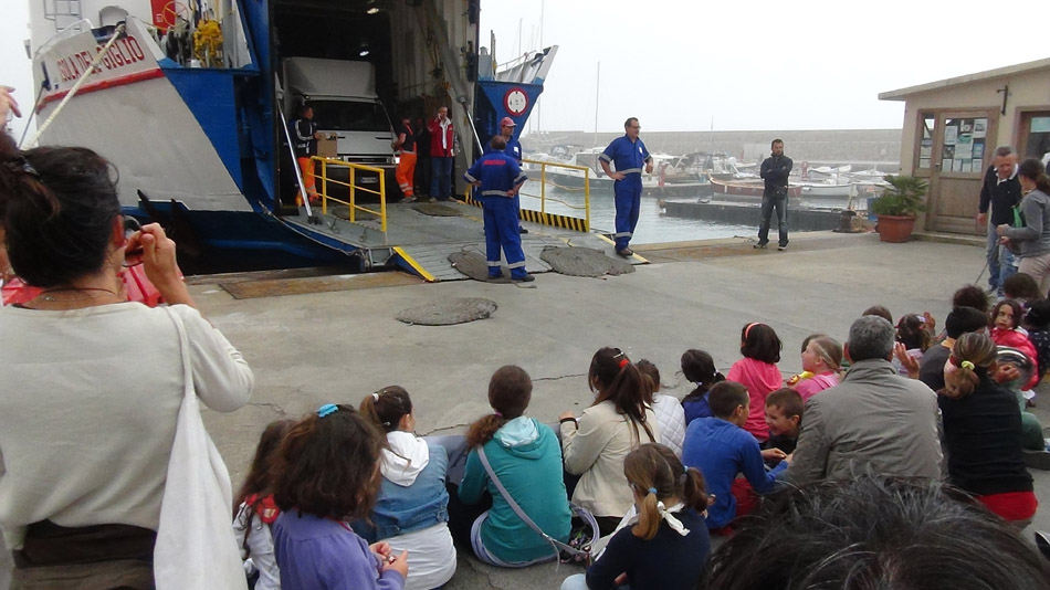 Il corteo è partito dal molo per accogliere il primo traghetto della giornata