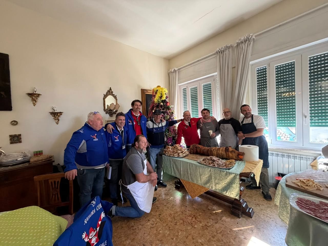 Dai Carrai, si comincia alle 10 la mattina “perché offriamo la colazione alla squadra corsi, il gruppo di volontari che fa girare la sfilata. Sono persone che gratuitamente fanno la scorta ai carri, garantiscono il passaggio in sicurezza delle costruzioni e noi li ringraziamo con la nostra colazione”. Attenzione, non una colazione qualunque: si parte subito con il botto, porchetta, salumi, lasagne. Tutti prodotti dell’entroterra e della produzione del territorio perché, insomma, mica fa male far vedere che in Versilia sia mangia bene e da sempre: “Noi puntiamo sui prodotti di terra perché è la nostra tradizione più antica.