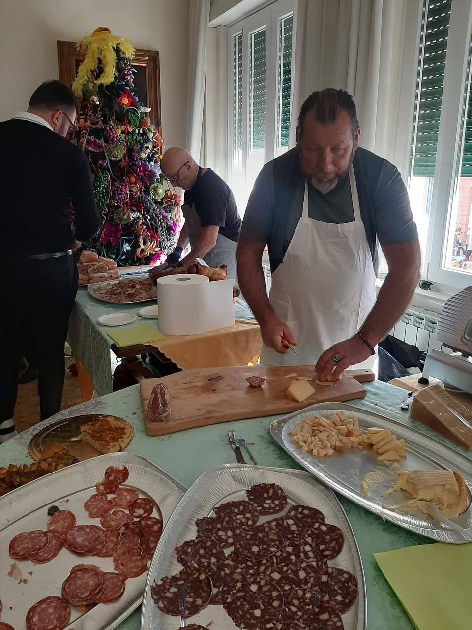 La cucina di mare è più giovane: risale a circa 200 anni fa. Quindi, come tutti gli anni, con alcune settimane di anticipo, allertiamo una delle migliori norcinerie e gastronomie del territorio (Bonuccelli di Camaiore) e partono le ordinazioni”. Che, per l’ultima domenica di porte aperte, ha significato – tanto per quantificare – 200 porzioni di lasagne, una porchetta di 28 chili finita in poche ore, salame nostrano, biroldo (il sanguinaggio o mallegato), formaggio.