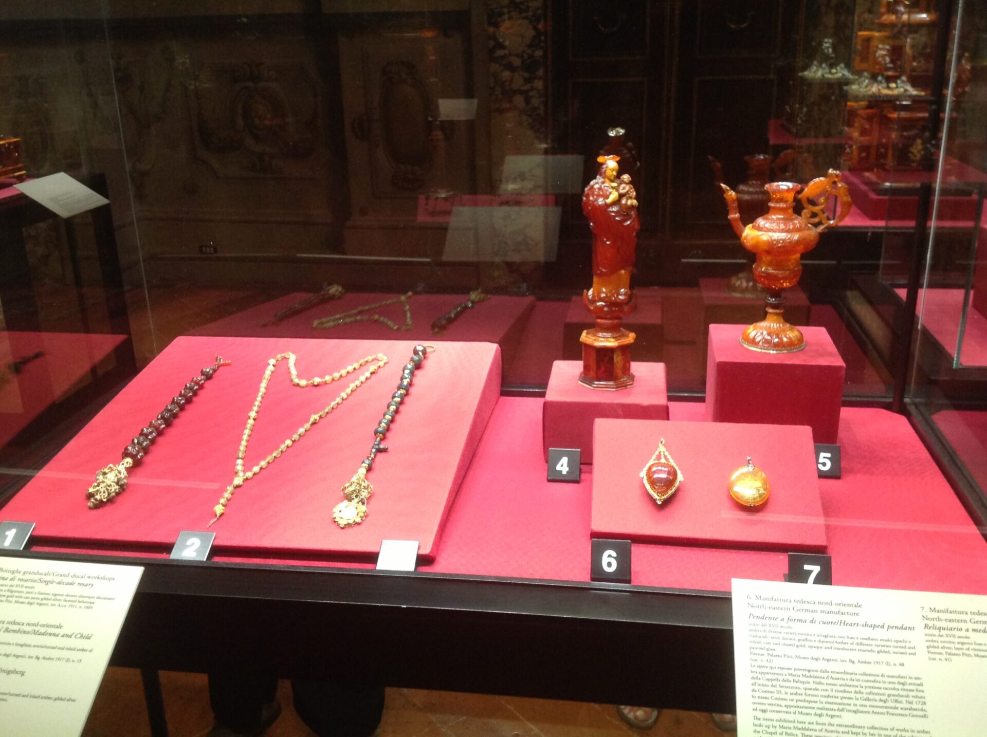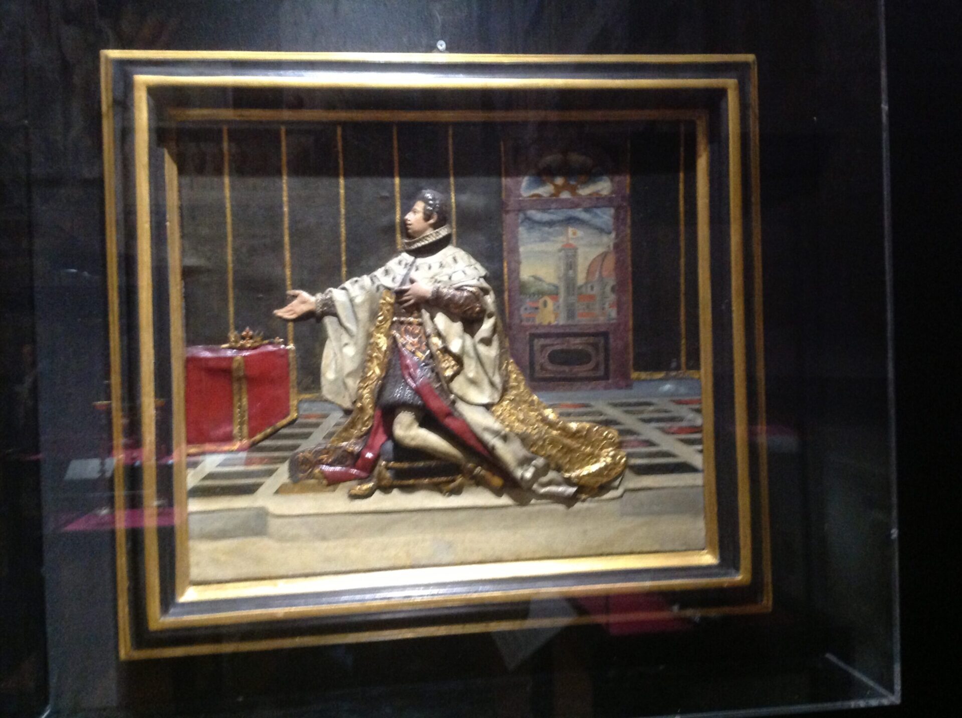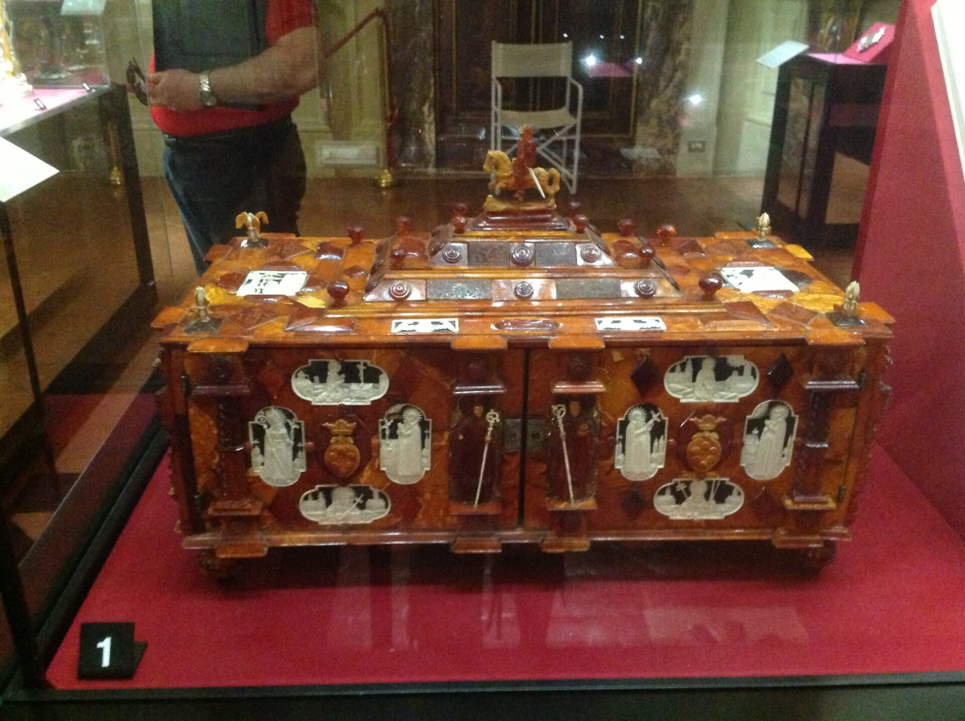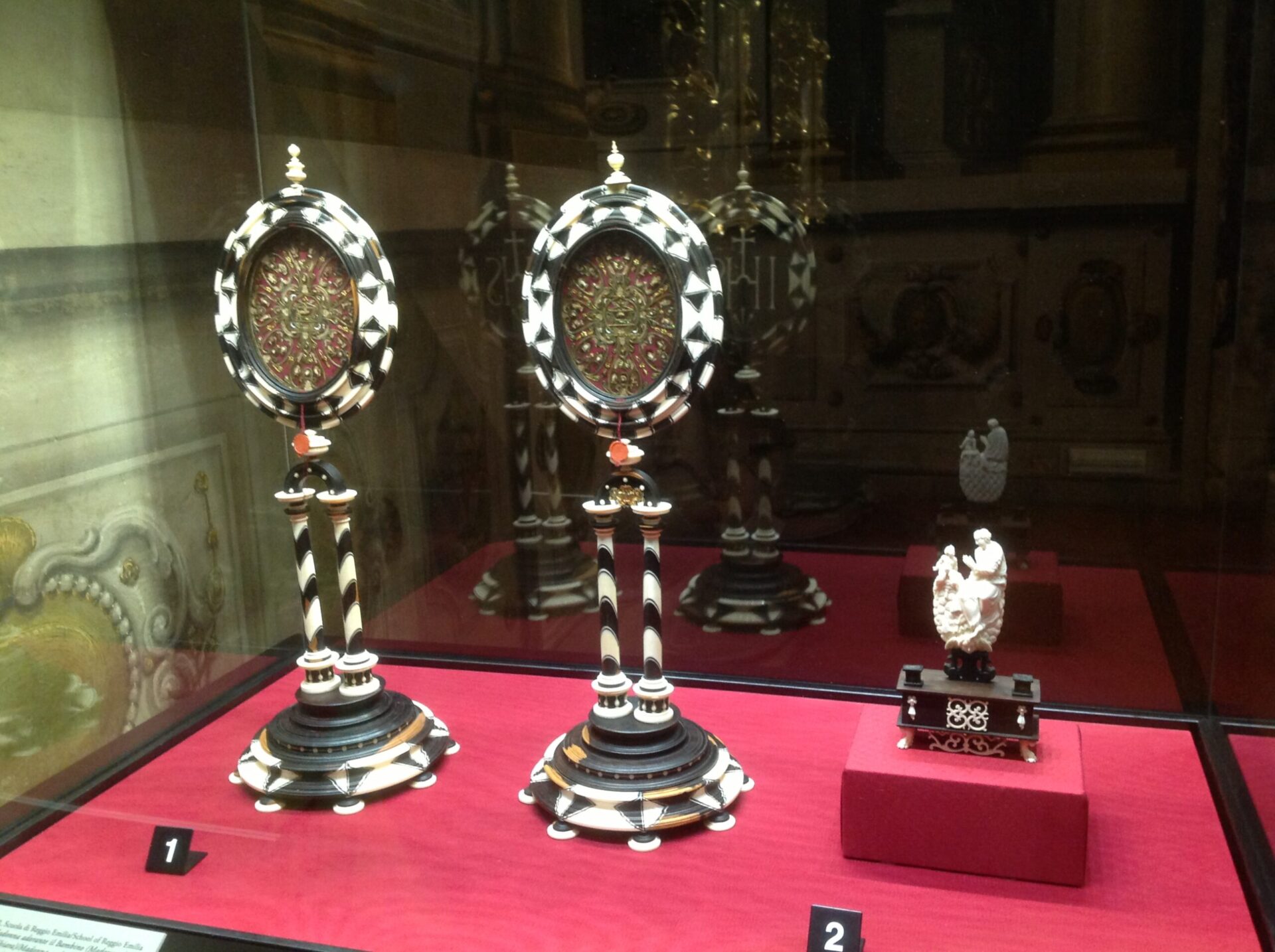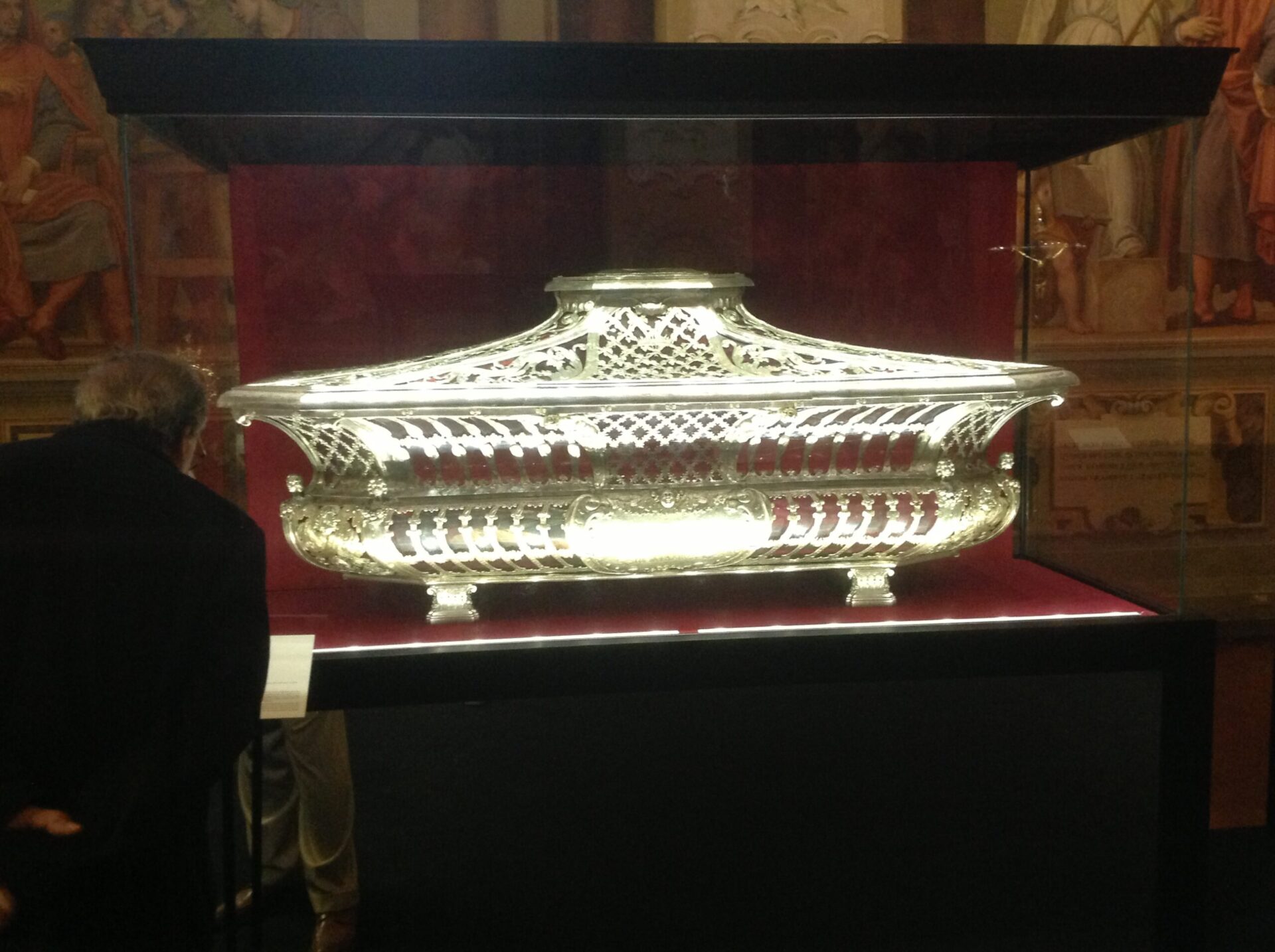 Una “casa” per le reliquie Vittoria della Rovere e suo figlio Cosimo III, grandemente devoti, lo trasformarono a fine secolo in uno dei più vasti tesori sacri d’Europa, paragonabile per fasto solo a quello dei sovrani di Spagna all’Escorial: un tripudio di oro, argento, pietre preziose, corallo, pietre dure, ambra del Baltico, ebano, avorio… il tutto lavorato dagli artisti più celebri. Cosimo III, in particolare, si dedicò a un’incessante ricerca di reliquie, soprattutto di personaggi provenienti da regioni remote, facendo realizzare straordinarie custodie ad artisti di corte come Massimiliano Soldani Benzi, Cosimo Merlini il Giovane e Giuseppe Antonio Torricelli, coadiuvati da Giovan Battista Foggini, poliedrico progettista di reliquiari di grande fasto e dalle forme ricercate. Fra queste opere spicca l’originale reliquiario che contiene il femore di San Casimiro, patrono della Polonia e della Lituania: un trionfo di gigli e nastri in argento, sorretto da putti a tutto tondo, un prodotto di altissima manifattura realizzato dal Soldani Benzi. Di non minore bellezza la “Cassetta di San Casmiro”, in ambra e avorio, appositamente realizzata per trasportare la reliquia del femore a Firenze.