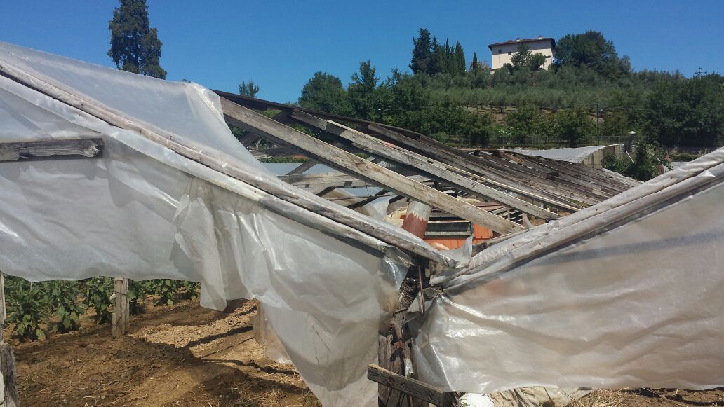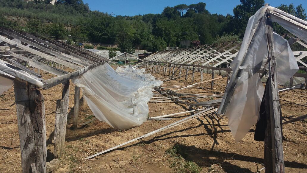 La tromba d’aria di sabato 1 agosto localizzata nei comuni di Firenze, Pontassieve, Fiesole e Bagno a Ripoli ha messo letteralemente in ginocchio l’agricoltura locale, devastando produzioni ortofrutticole e capannoni. Lo comunica, in una nota, la Cia Toscana che ha realizzato una prima stima dei danni: 100% per le aziende fiorentine colpite dal tornado. Per le singole aziende colpite danni anche di 150mila euro; oltre un milione il totale destinato a crescere.