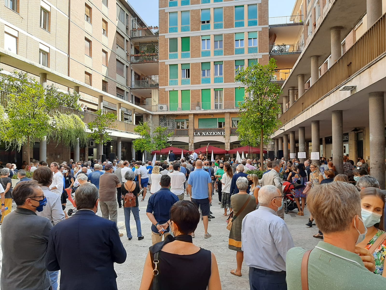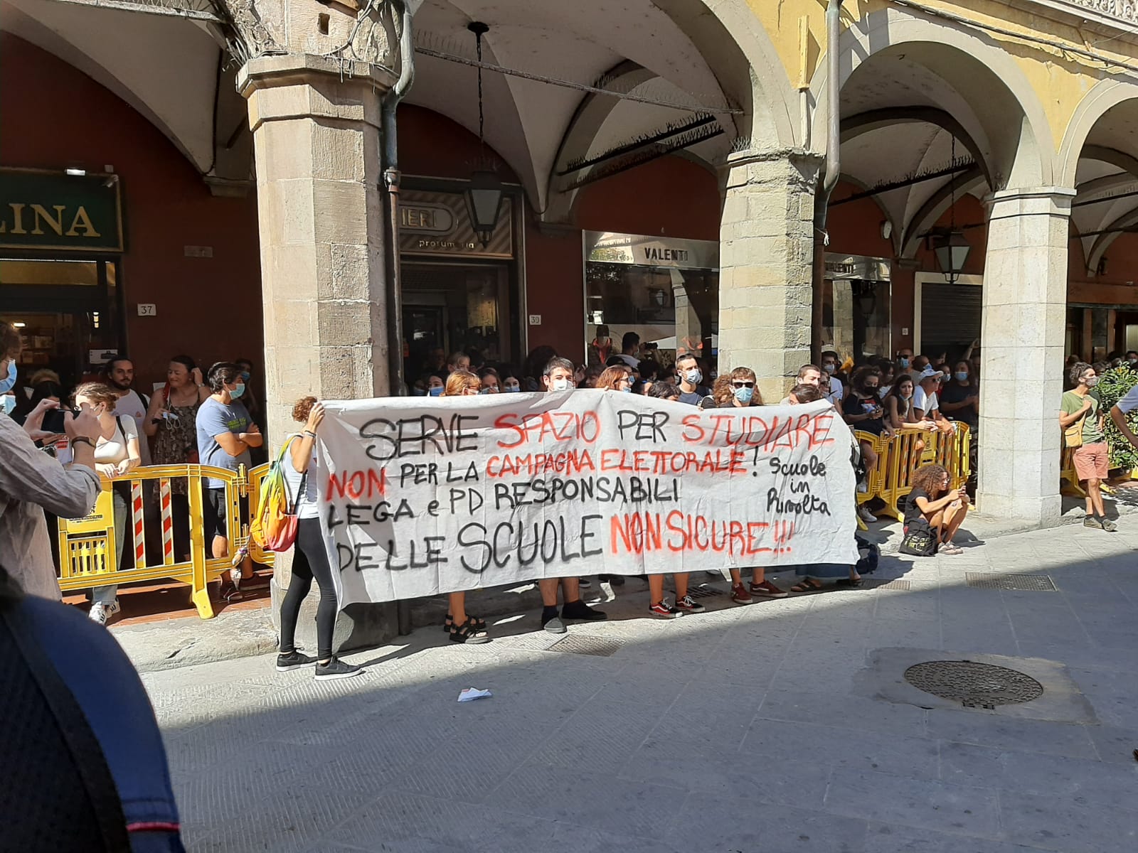 I giovani hanno srotolato uno striscione in cui si attaccano il Pd e il Carroccio per le condizioni dell’edilizia scolastica. Un robusto servizio d’ordine di Polizia e Carabinieri sta vigilando che non vi siano disordini. Sullo striscione esposto dagli studenti, appartenenti all’area della sinistra radicale e antagonista, c’è scritto: “Serve spazio per studiare non per la campagna elettorale. Pd e Lega responsabili delle scuole non sicure”. Lo striscione è firmato “Scuole in rivolta”.