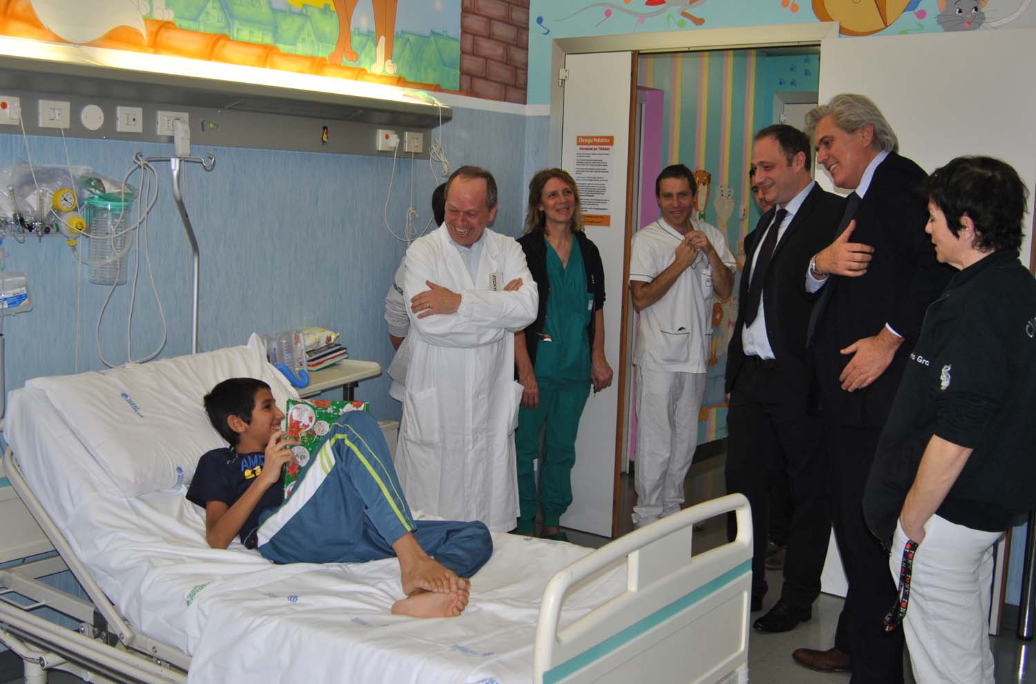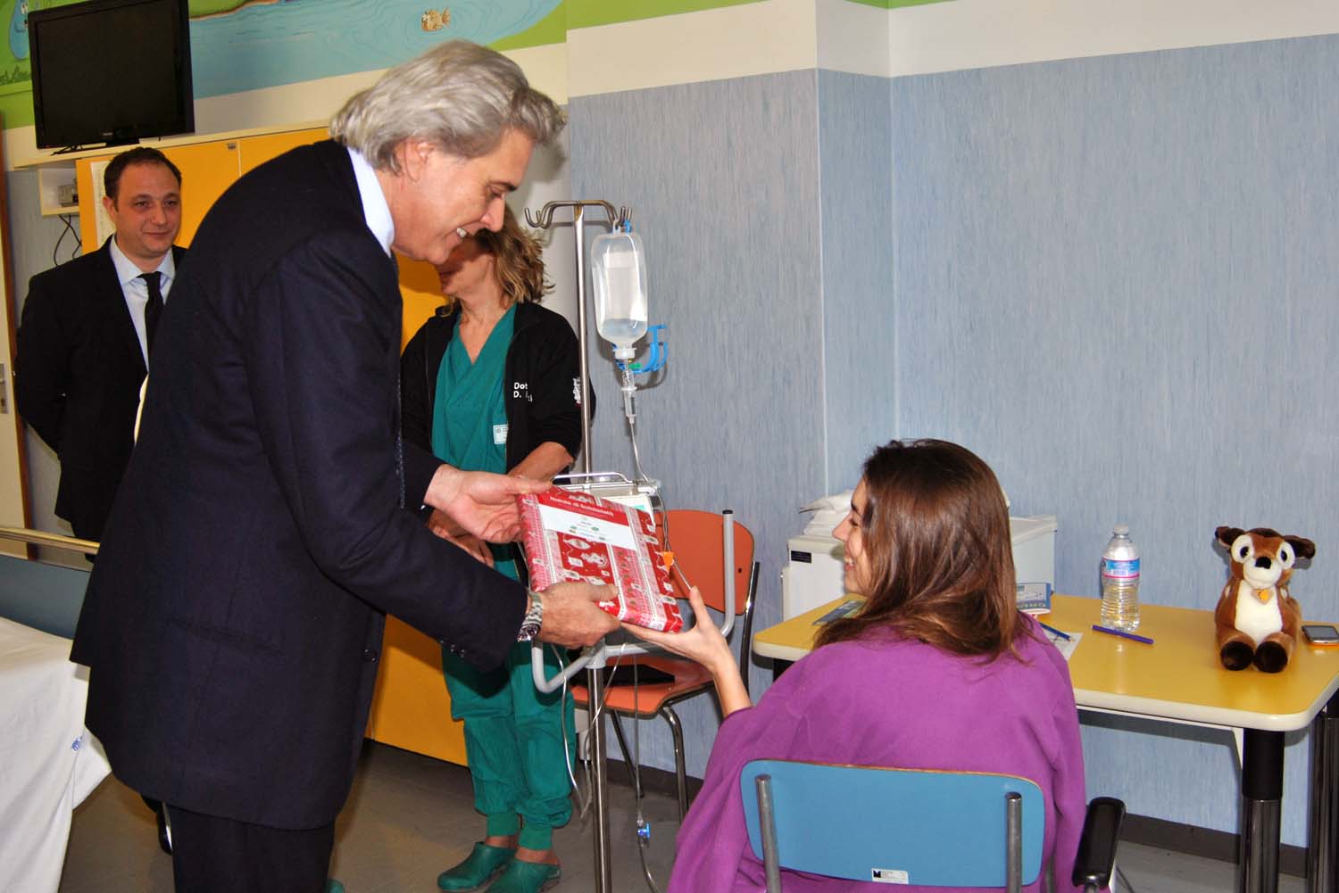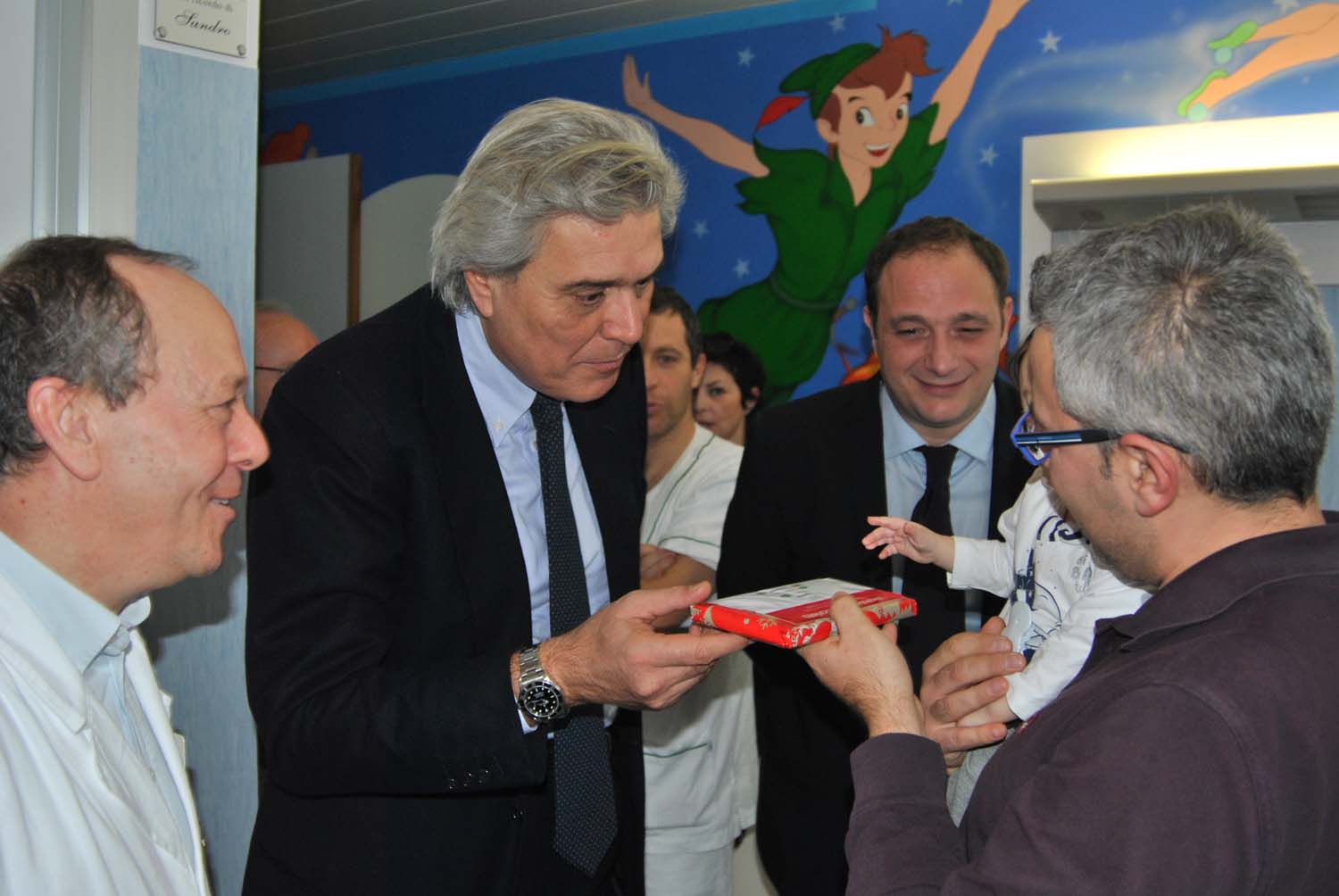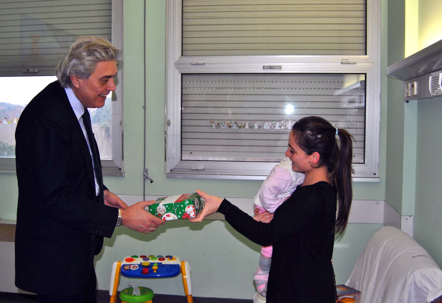 Anche la Regione Toscana, con l’assessore al Diritto alla Salute Luigi Marroni, ha portato graditi doni ai bambini ricoverati presso l’AOU Senese. L’assessore ha visitato il Dipartimento Materno-Infantile e, incontrando gli operatori, ha detto: «Questi ultimi due-tre anni sono stati molto difficili per la sanità. Nonostante le difficoltà, e soprattutto grazie, non mi stanco mai di ripeterlo, a tutti gli operatori, abbiamo ottenuto grandi risultati, ritrovandoci in cima alle classifiche nazionali. In ottobre è stato il Programma Nazionale Esiti, ora la classifica dei Lea. Di questi risultati voglio ringraziare gli operatori della sanità toscana, e quindi, anche voi delle Scotte. E’ soprattutto grazie a voi, alla vostra professionalità, generosità, dedizione, che riusciamo a conseguire obiettivi così ambiziosi e a dare ai nostri cittadini servizi di qualità. Con il mio grazie, anche gli auguri per le festività natalizie e per un 2015 migliore, per voi tutti e per le vostre famiglie».