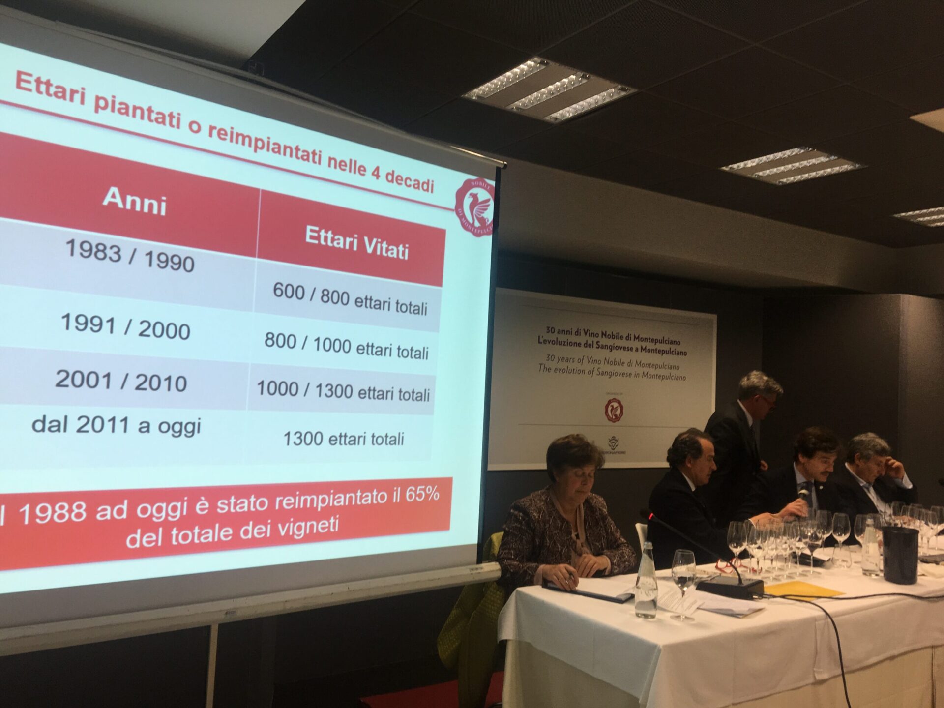 “Abbiamo voluto organizzare un percorso di trent’anni con un filo conduttore, il Sangiovese a Montepulciano – ha detto Paolo Solini, direttore del Consorzio del Vino Nobile di Montepulciano – Lo abbiamo fatto con il contributo di esperti per capire come questo vitigno così rappresentativo della Toscana reagisca nel tempo sulla base del microclima e del tipo di invecchiamento previsto per il Vino Nobile di Montepulciano. Grazie alle riflessioni fatte siamo riusciti anche a dare una idea dello stile e della riconoscibilità che rappresentano la nostra denominazione. Il successo di presenze dimostra il crescente interesse verso i vini del territorio”.