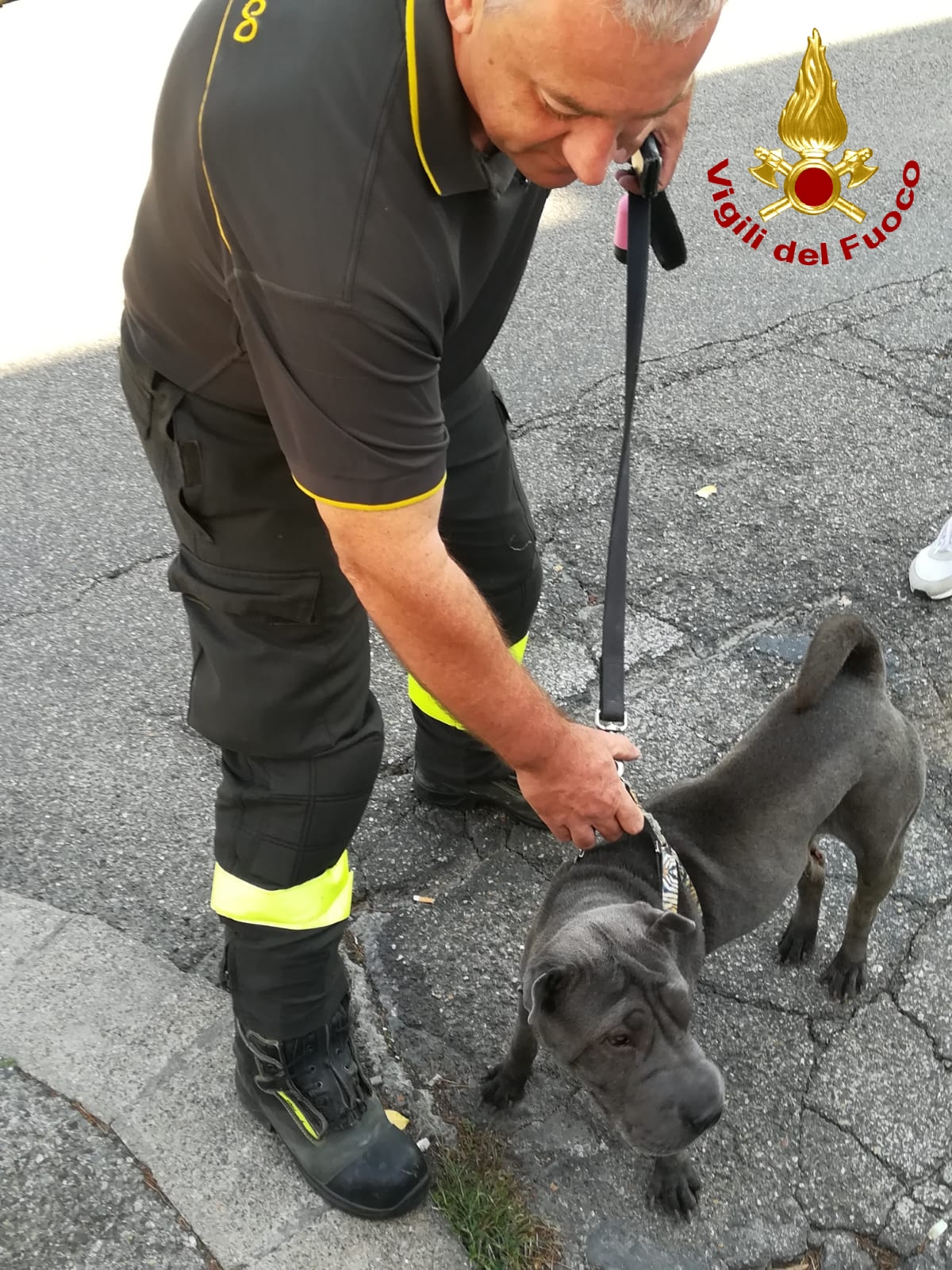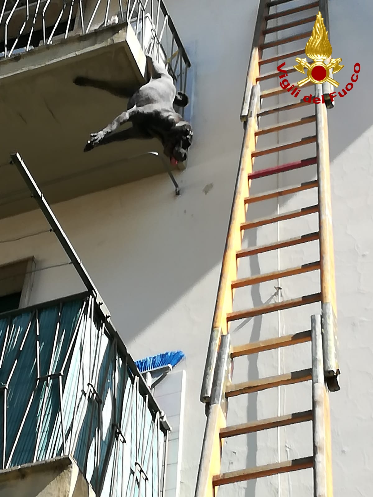 A salvare l’animale i Vigili del Fuoco che, dopo aver montato una scala per arrivare al terzo piano del palazzo, hanno salvato il cane, che ha riportato solo una piccola ferita alla zampa.