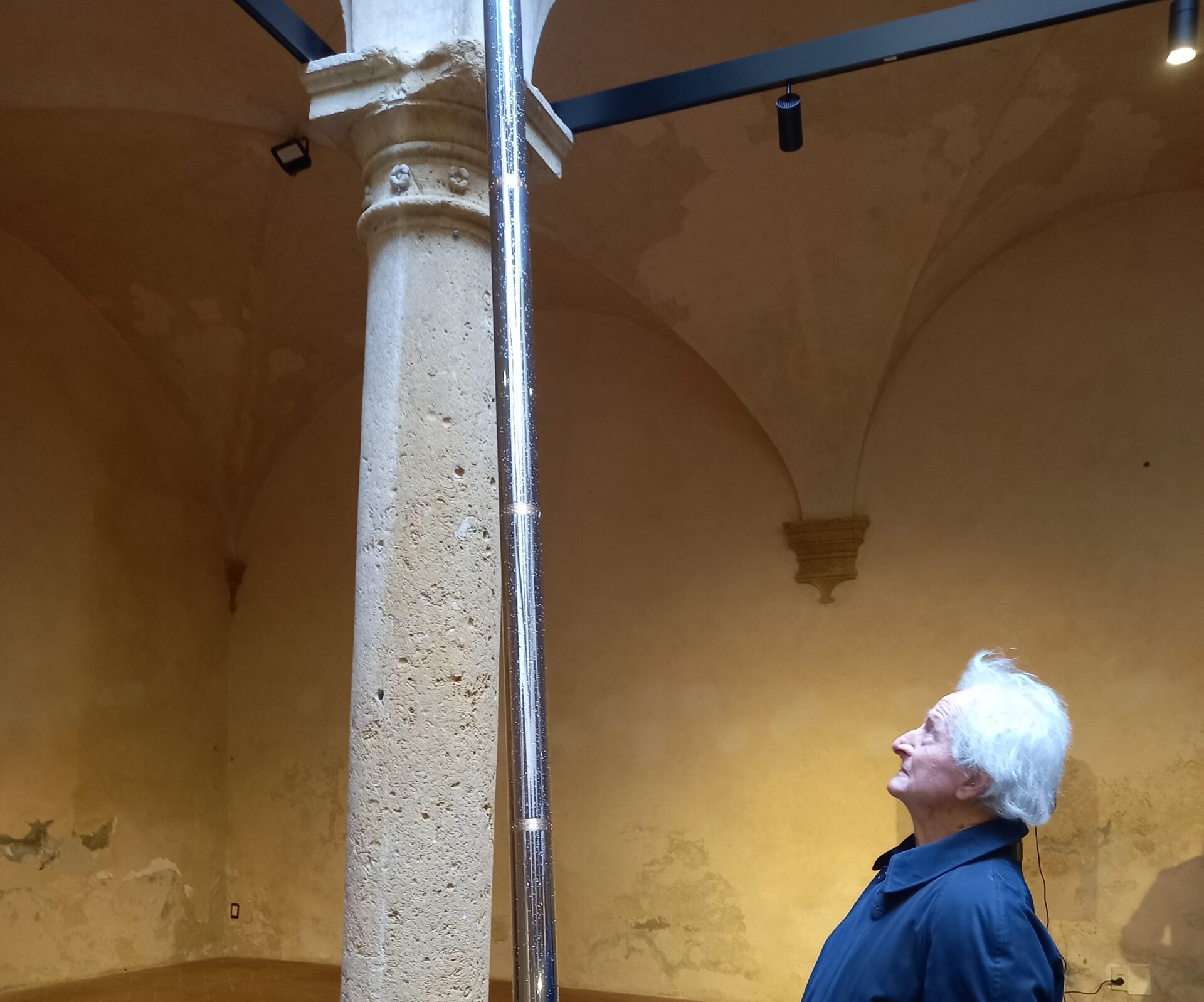 La città ha celebrato l’acquisizione permanente dell’opera del maestro Paolo Icaro, ‘Polarità’, che entrerà nella collezione permanente della pinacoteca di Volterra, a seguito della vittoria da parte del Comune della nona edizione dell’Italian Council del ministero della cultura. Collocata nel chiostro del palazzo della pinacoteca di Volterra, Polarità è un’opera site-specific concepita dall’artista strettamente in connessione con la città, la collezione del museo – che custodisce, tra le altre, le più importanti opere del Signorelli e di Rosso Fiorentino –, e la sua architettura, e con lo spazio osmotico del chiostro, al quale si arriva dalla città e dal paesaggio. Con un intervento minimalista, rispettoso dello spazio storico in cui si inserisce, la linea diagonale di Polarità (un sottile asse di acciaio di circa 6 metri) spezza l’ortogonalità del chiostro, vero e proprio hub dove l’opera rafforza l’ambivalenza “terra/cielo” o “città/paesaggio”, come anche possibile e colta rilettura del gioco compositivo di alcuni capolavori conservati nel museo, in cui la struttura geometrica viene intervallata drammaticamente, rivoluzionando il linguaggio della storia dell’arte dalle forze diagonali narrative che la costruiscono. Una sorta di colonna ‘Traiana’ post litteram, dove non si raccontano le vittorie gloriose in guerra di un imperatore romano. Perché l’opera custodisce un alto senso del presente, dell’oggi, mescolato ad una sensibilità devota al passato. I riferimenti sono cristallini: incontriamo non solo le geometrie del chiostro di Palazzo Minucci Solaini, sede della pinacoteca civica, ma anche le tormentate angolazioni de ‘La Deposizione dalla Croce’ di Rosso Fiorentino, e le diagonali de ‘L’Annunciazione’ di Luca Signorelli, capolavori custoditi nella pinacoteca volterrana. Con ‘Polarità’, il maestro inventa nuovi linguaggi: la diagonale in acciaio (il metallo dell’oggi) intarsiata di bronzo (il metallo della memoria), si adagia in verticale e con delicatezza al porticato del chiostro della pinacoteca, calcolando la mobilità di proporzioni dell’antico chiostro nel verticalismo dell’asse, dove incontriamo un metallo specchiante pregno di simbolismi, dallo Zenit al Nadir, fino a una serie di numeri decimali impressi. Le due punte dell’opera sono origine e fine: c’è la punta issata al selciato antico del chiostro, c’è la punta che guarda al cielo. Un asse che sembra guardare a un infinito più materiale, dell’oggi, in un divenire del tempo. All’interno del progetto è prevista una collaborazione con le scuole di Volterra per un workshop sul progetto, e fuori dall’Italia, sarà organizzata una mostra all’Ekaterina Cultural Foundation a Mosca, con fotografie e video di Michele Alberto Sereni che racconteranno il lavoro di Paolo Icaro nel chiostro della Pinacoteca, presentando al pubblico russo anche la città di Volterra, la sua storia e le sue ricchezze artistiche.