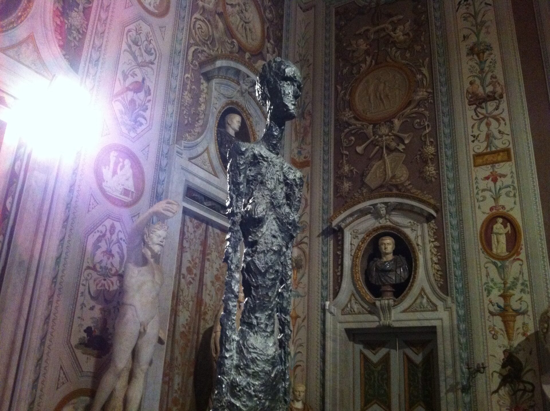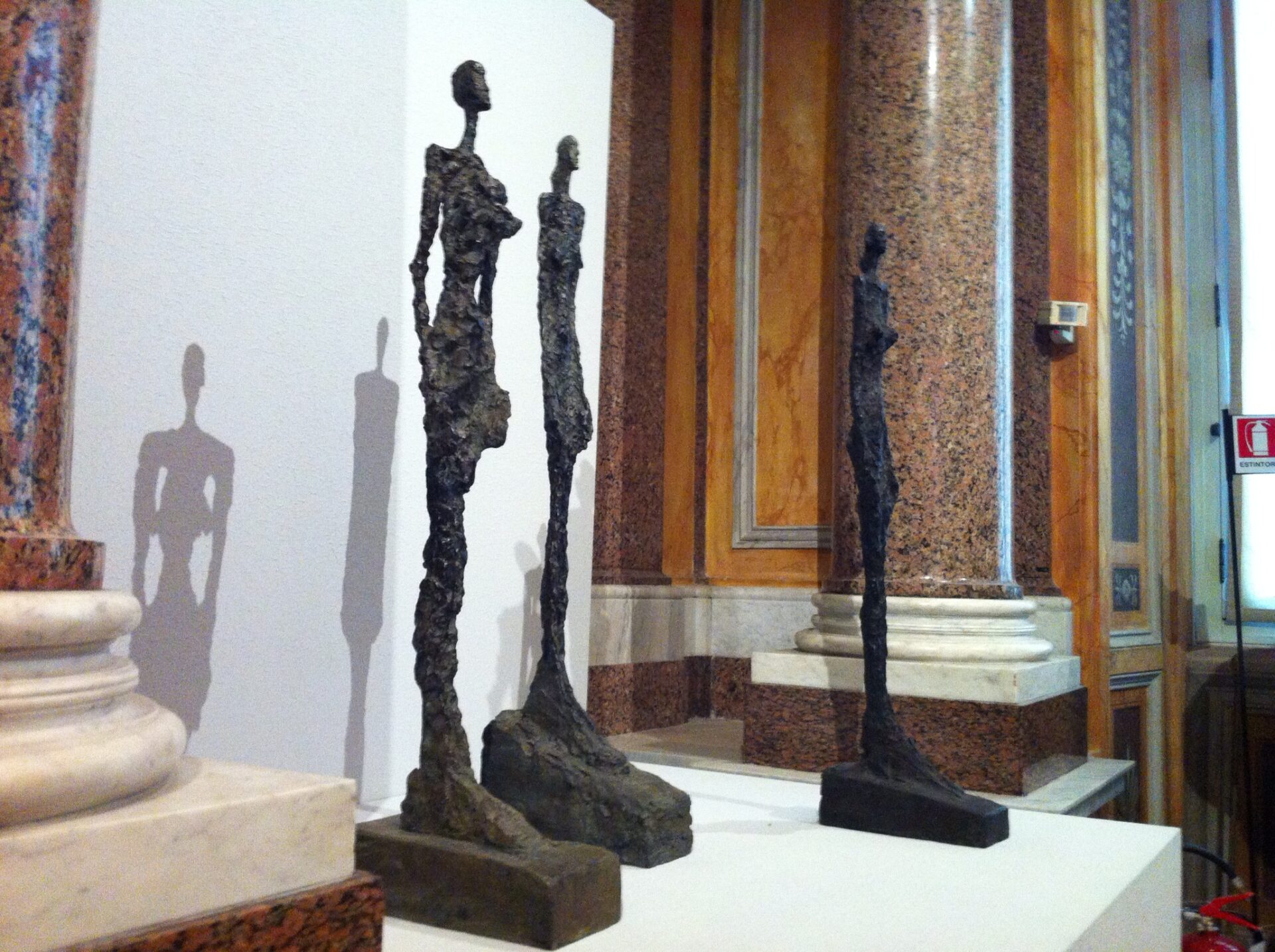 Le figure dell’uomo moderno scolpite da Alberto Giacometti. Forme esili, longilinee, quasi invisibili che si contrappongono alla maestosità delle opere di Canova e Bernini. Sono 40 i capolavori dello scultore svizzero, tra i più importanti artisti del ‘900, ospitati nelle meravigliose sale di Galleria Borghese a Roma fino al prossimo 25 maggio. La mostra e’ organizzata e curata da Anna Coliva, direttrice della Galleria Borghese e da Christian Klemm, autore delle monografie più importanti dell’artista.