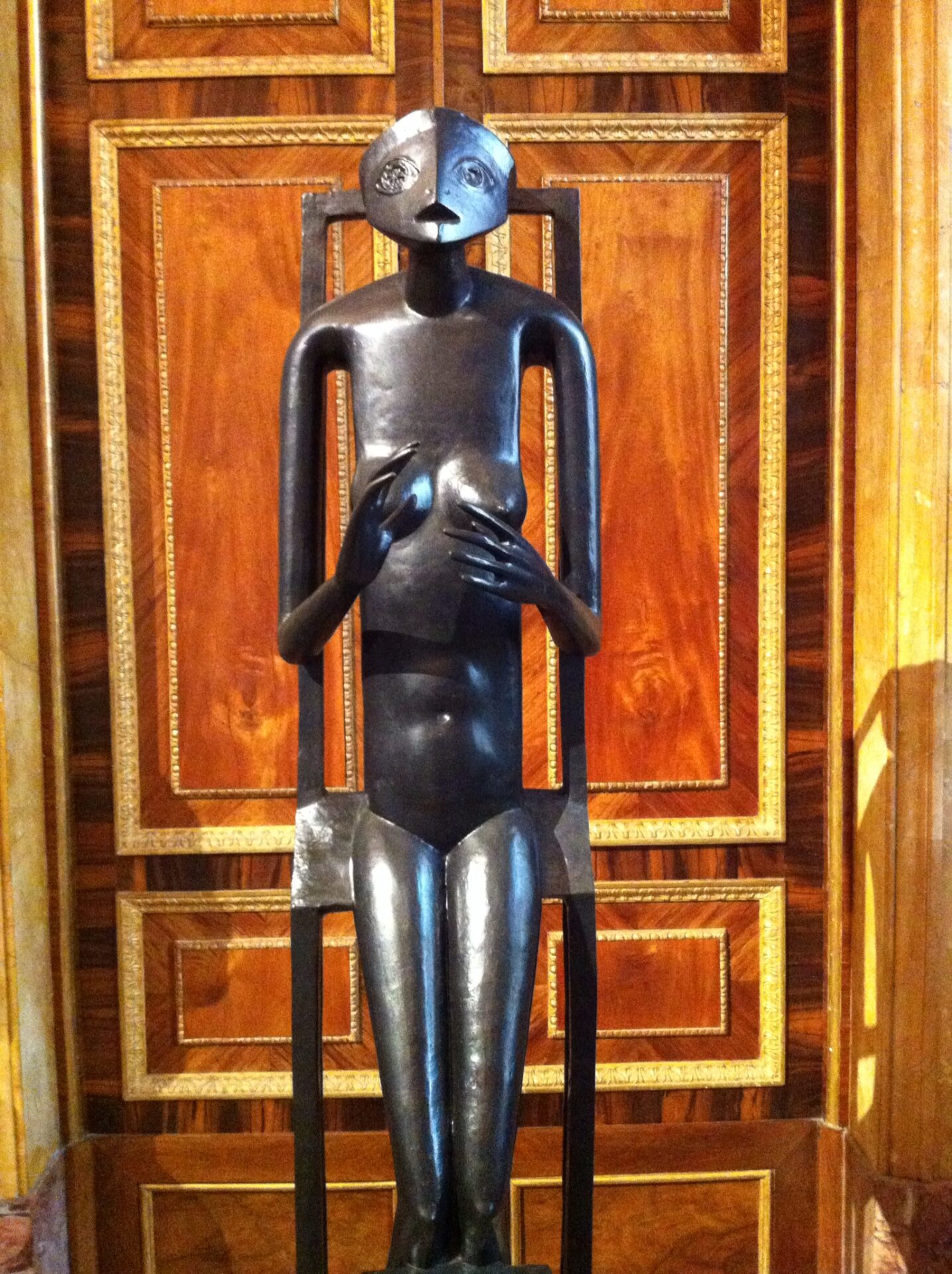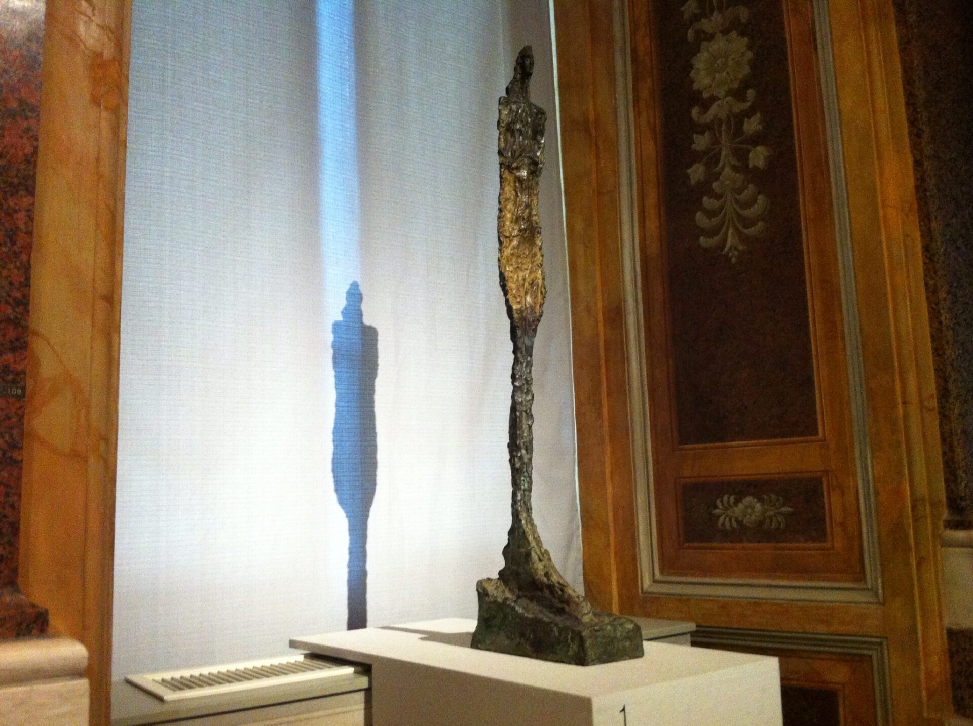 La Femme qui marche (1932/1936) è nera e misteriosa come le sfingi di basalto della sala egizia; l’Homme qui chavire(1950) vacilla e perde l’equilibrio come il (1623/1624).«Tutto il percorso degli artisti moderni è in questa volontà di afferrare, di possedere qualcosa che sfugge continuamente… È come se la realtà fosse continuamente dietro i velari che si strappano. Ce n’è ancora un’altra, sempre un’altra», diceva Giacometti a proposito della rappresentazione che uno scultore tenta di fare del reale e la mostra è l’occasione per vedere le forme sottili ed allungate di uno dei maggiori interpreti dell’arte contemporanea.