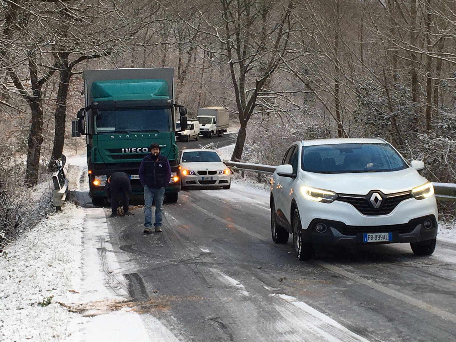 La Toscana si sta imbiancando a macchia di leopardo. Qua e là la neve sta scendendo sui vari territori della regione, in altre parti arriva trasportata dal vento. E c’è ancora l’allerta meteo per lo stato di criticità “codice arancio” per rischio vento e per il rischio neve, soprattutto per il territorio dell’Alto Mugello. In provincia di Firenze nella notte sono state registrate raffiche di grecale fino a 113 km/h sui rilievi e fino a 60 km/h in pianura. Deboli precipitazioni nevose hanno interessato i rilievi appenninici. Riaperta la E45 nel tratto che interessa la provincia di Arezzo dove possono interessare solo i mezzi con catene e sotto i 35 quintali. Lorenzo, un nostro lettore, ci ha mandato questa foto dalla Strada della Foce, che collega – sebbene non abbondanti – hanno creato i primi disagi alla circolazione, specie per i mezzi pesanti