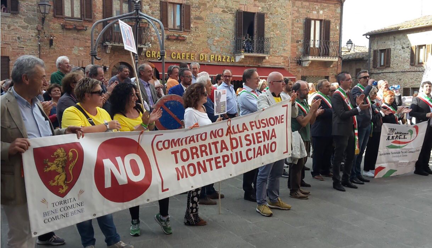 Oltre cinquecento persone a Torrita per dire No alle fusioni a freddo tra i Comuni in nome di “Orgoglio Comune”, la manifestazione che dopo Volterra nel 2016 ha fatto tappa nella cittadina interessata ad un processo di fusione con la confinante Montepulciano. Insieme a tanti cittadini anche molti sindaci provenienti da tutta Italia con fascia tricolore a manifestare in difesa delle autononomie locali. Pochi i primi cittadini senesi, ma significative le presenze di Rapolano Terme e di Monteriggioni.