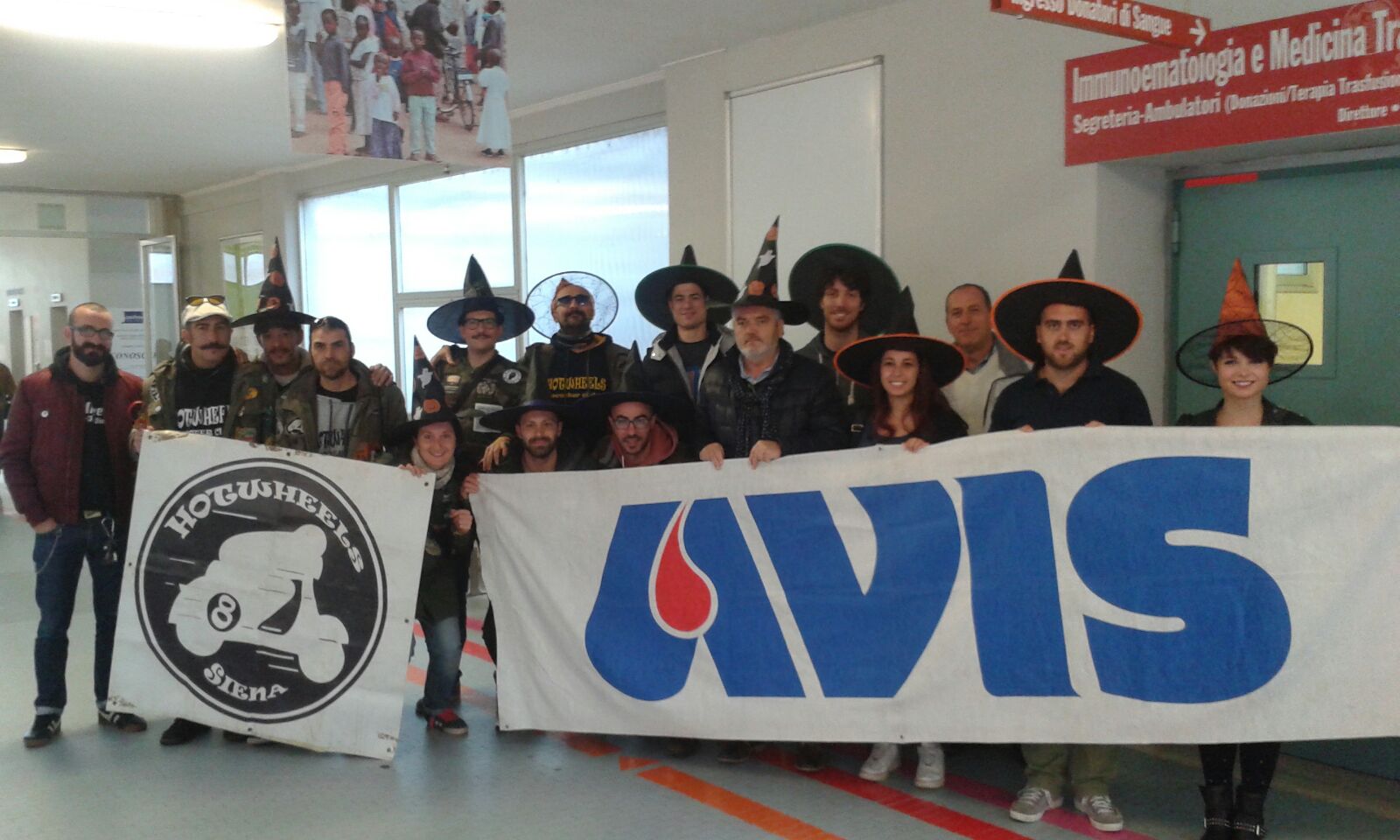 Sabato 31 ottobre una delegazione composta da Avis Taverne e Arbia e Hotwheels Scooter Club al centro emotrasfusionale del Policlinico Santa Maria alle Scotte di Siena. In attesa della notte delle streghe una simpatica iniziativa per la diffusione dei valori della donazione di sangue e dell’amicizia