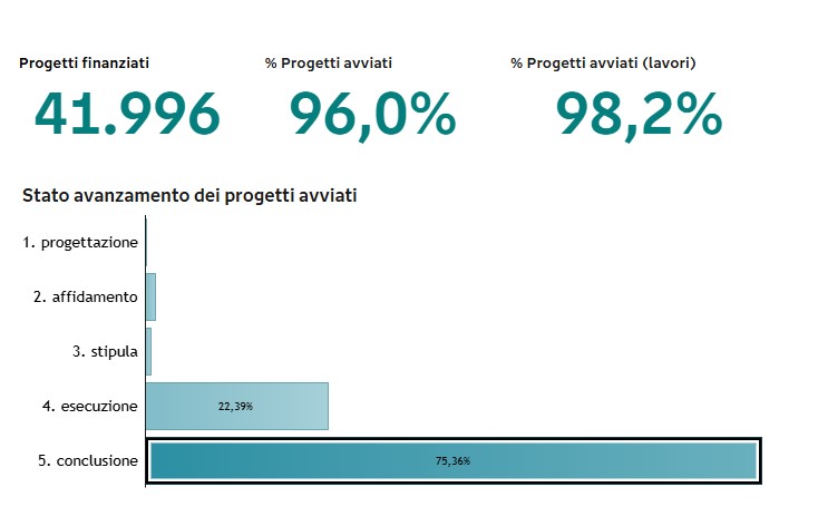 Secondo la Regione Toscana, nella nostra regione sarebbero arrivati circa 4 miliardi. Dal portale PNRR in Toscana, viene indicato che sarebbe stato in grado di attivare risorse per 12 miliardi. I progetti conclusi sono circa il 75%.