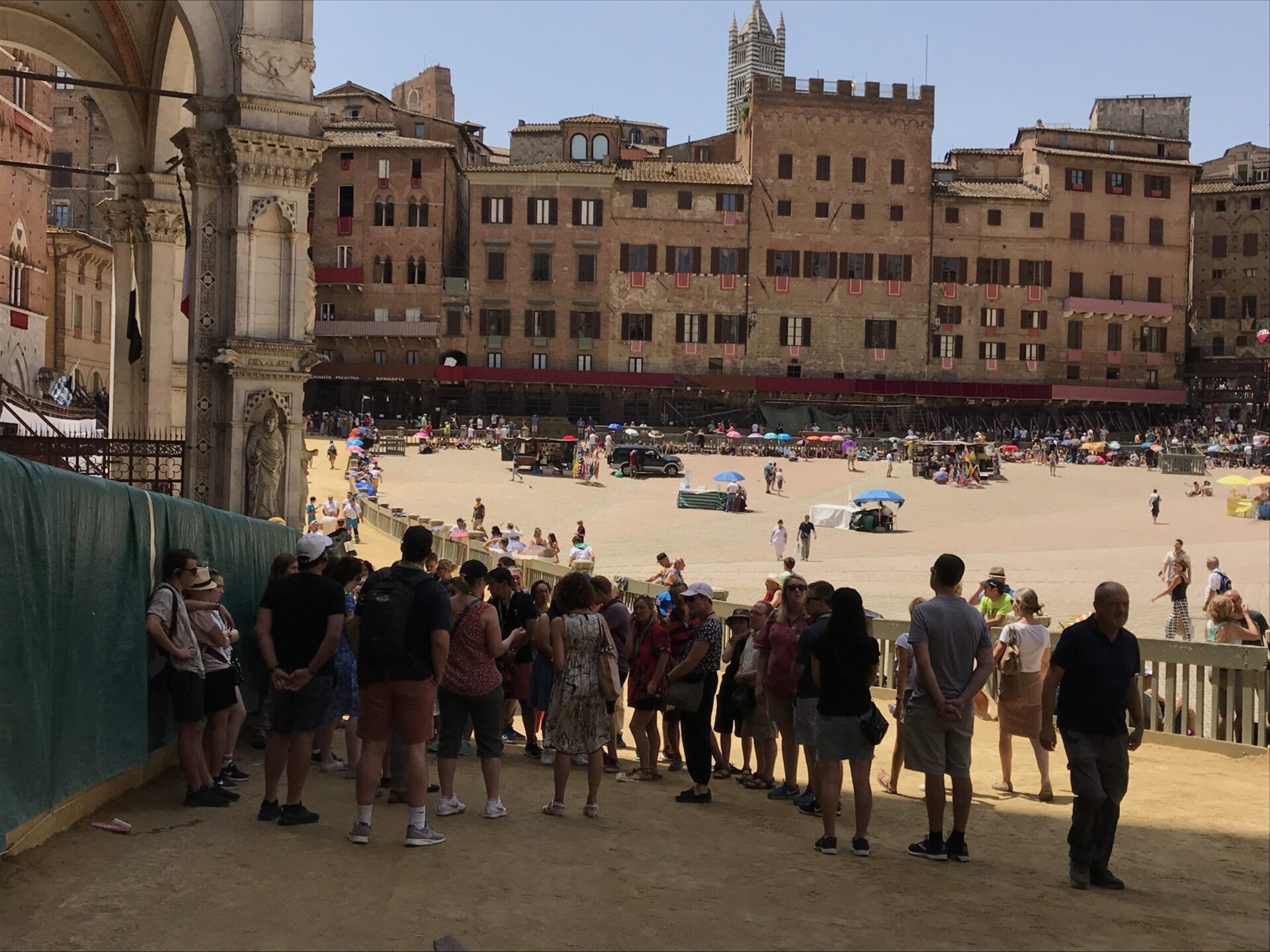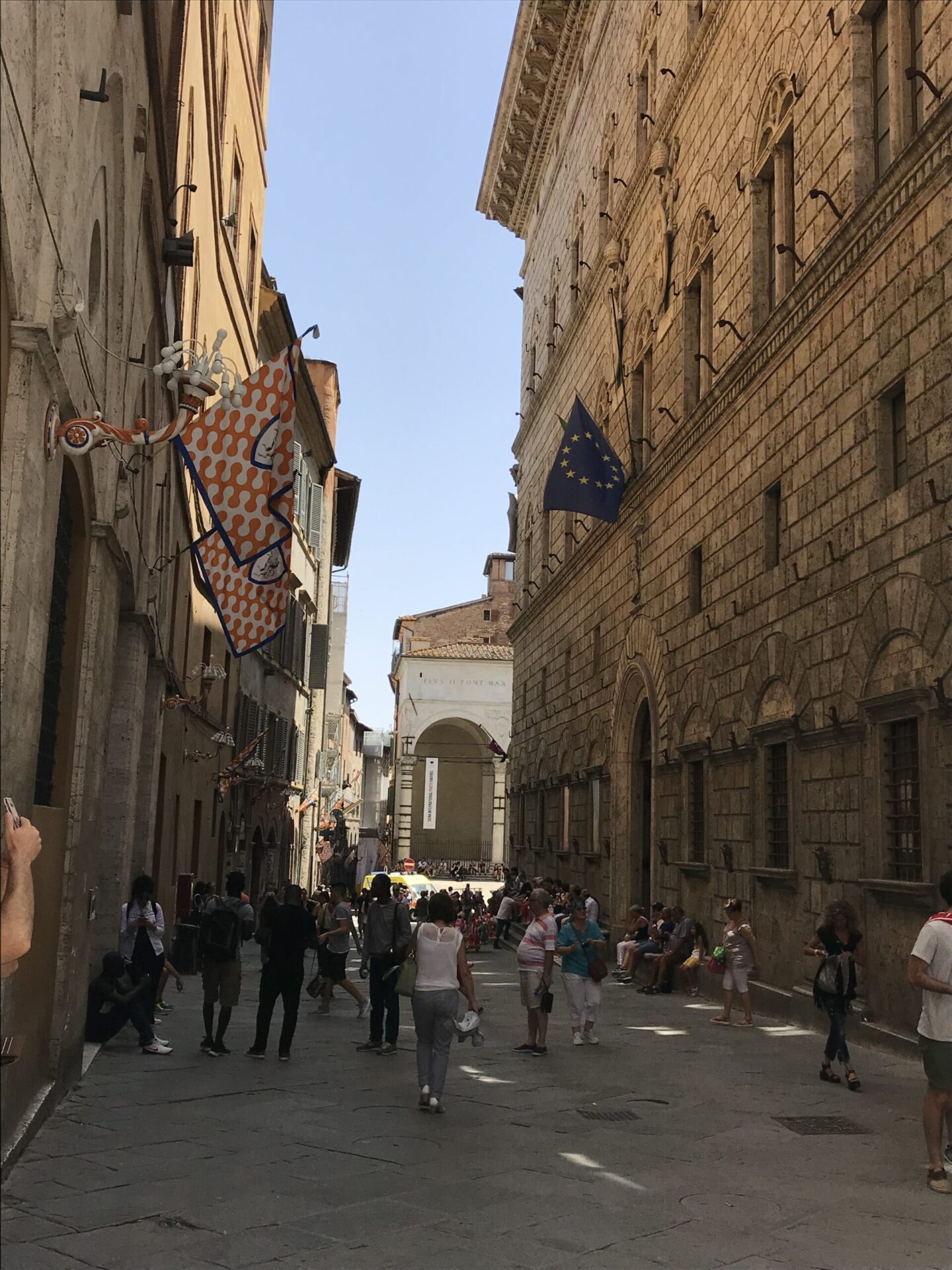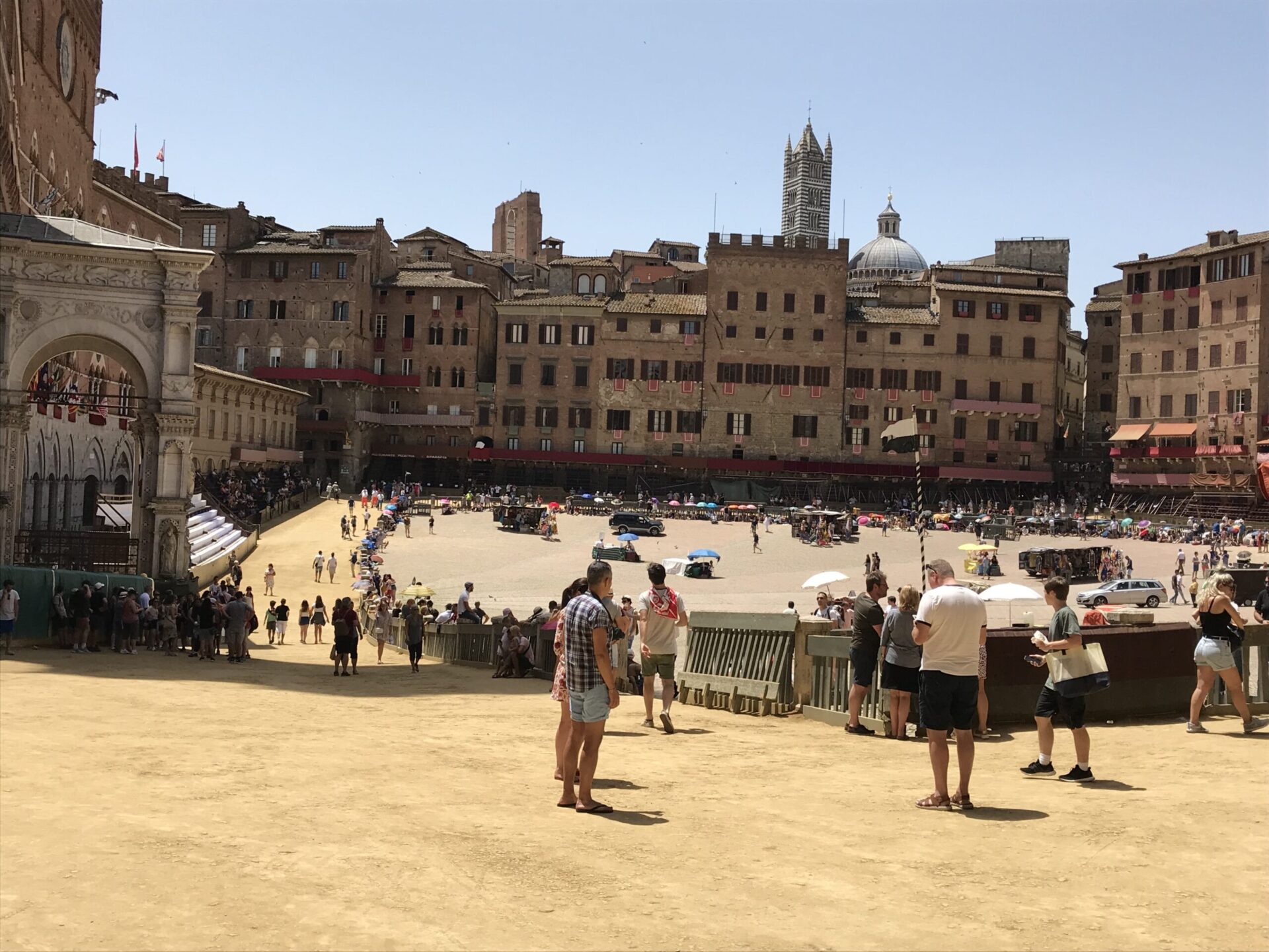 Ma a scandire il tempo a Siena nelle ore di Palio, più che gli esponenti della politica nazionale, sono i rintocchi di Sunto, il campanone posizionato alla sommità della Torre del Mangia. Ed allora imbattersi nei vicoli delle dieci contrade che tra poche ore si contenderanno il Drappellone realizzato da Emilio Giannelli è un viaggio tra il mistico e l’ascetico. Un silenzio surreale carico di speranza ti trapassa il cuore. Negli sguardi e nei respiri dei contradaioli ci sono tutte le attese di anni di passione e amore per la propria città e la propria appartenenza. Un’attesa che in tre giri di piazza fa trattenere il respiro fino al giubilo finale o ti strozza l’urlo in gola nell’attesa della prossima Carriera. Nell’attesa che tutto questo anche oggi si compia Siena continuerà, come sempre, a trionfare, immortale.