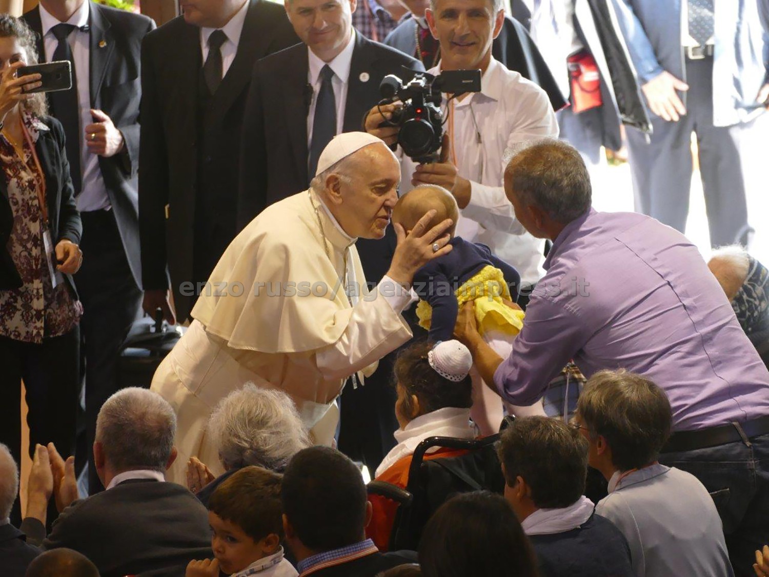 Grande gioia a Nomadelfia per la visita alla comunità di Nomadelfia questa mattina di papa Francesco. Atterrato con l’elicottero nel camo sportivo, era stato ricevuto da mons. Rodolfo Cetoloni, vescovo di Grosseto, da don Ferdinando Neri, successore di don Zeno, fondatore della comunità, e Francesco Matterazzo, presidente della comunità. «L’amore è l’unico linguaggio – ha detto – per i nostri bambini. Don Zeno lo capì benissimo». Poi ha esortato la comunità a continuare «questo stile di vita, confidando nella forza del Vangelo e dello Spirito Santo mediante la vostra limpida testimonianza cristiana». Il Papa poi ha visitato la tomba dove è sepolto don Zeno e si è raccolto in preghiera, dopo aver deposto una pietra con il proprio nome.