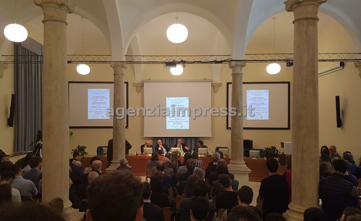 Nei confronti di Mps «la Bce ha preso una posizione molto rigida che se fosse stata presa negli Stati Uniti» per il salvataggio del sistema bancario «ci sarebbe stata una situazione estremamente più grave». Così il premio Nobel per l’economia 2001 Joseph Stiglitz a Siena ha risposto ai giornalisti che gli chiedevano quale fosse la strada per il risanamento della banca senese e quale ruolo giocasse la Bce. Stiglitz, a margine di una lezione pubblica all’Università di Siena, ha poi aggiunto: «Per fortuna gli Stati Uniti non hanno avuto gli stessi vincoli dalla Bce nel salvare le proprie banche».