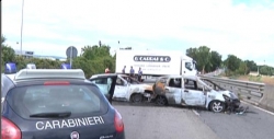 Le immagini delle vetture coinvolte nella rapina al furgone portavalori sulla Siena Firenze