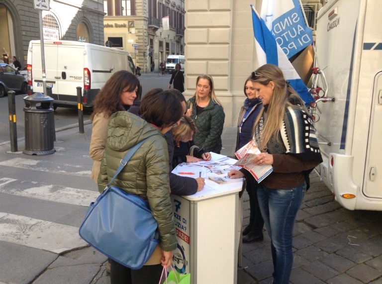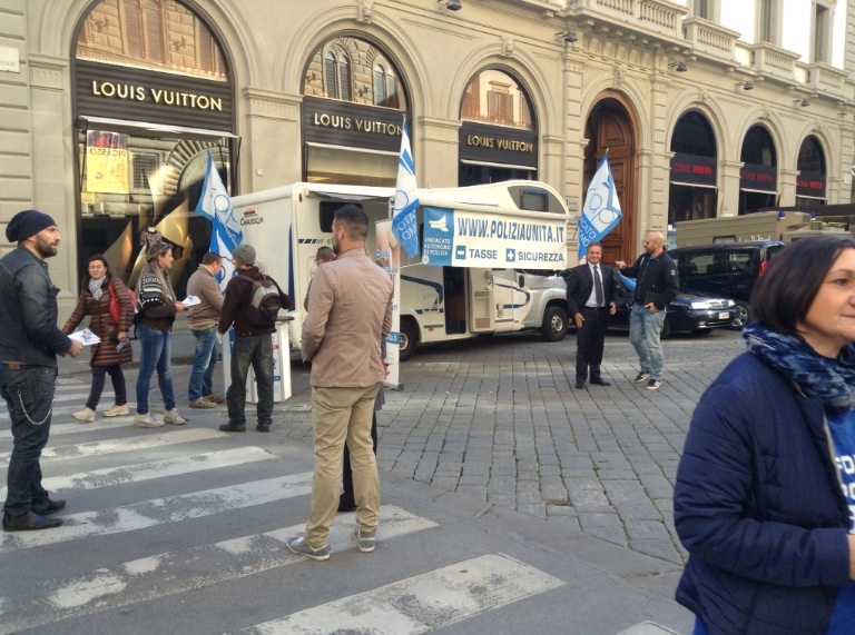#piazzapermanente. E’ questo il titolo petizione promossa dal Sindacato Autonomo di Polizia (Sap, www.poliziaunita.it) che sta girando tutta l’Italia con un apposito camper. Nella città del premier Renzi «abbiamo uno degli esempi maggiori di sprechi e duplicazioni che giustificano la necessità di ridurre il numero di forze di polizia», sostiene il Sap durante la raccolta firme a Firenze. Il camper del Sap prosegue il suo tour in tutta la Toscana. Domani 24 ottobre sarà a Prato, il 25 ad Arezzo, il giorno successivo a Siena.