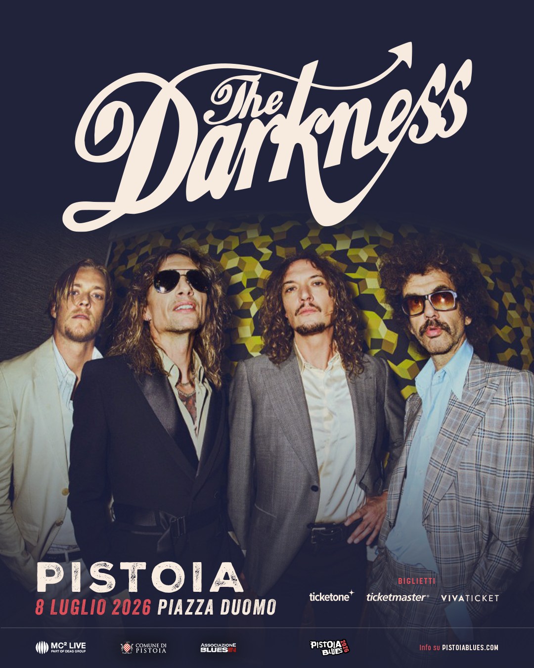 Il programma del Pistoia Blues al momento è composto da Eric Steckel e Fantastic Negrito (4 luglio), Jet (5 luglio), The Darkness (8 luglio), Jethro Tull (10 luglio).