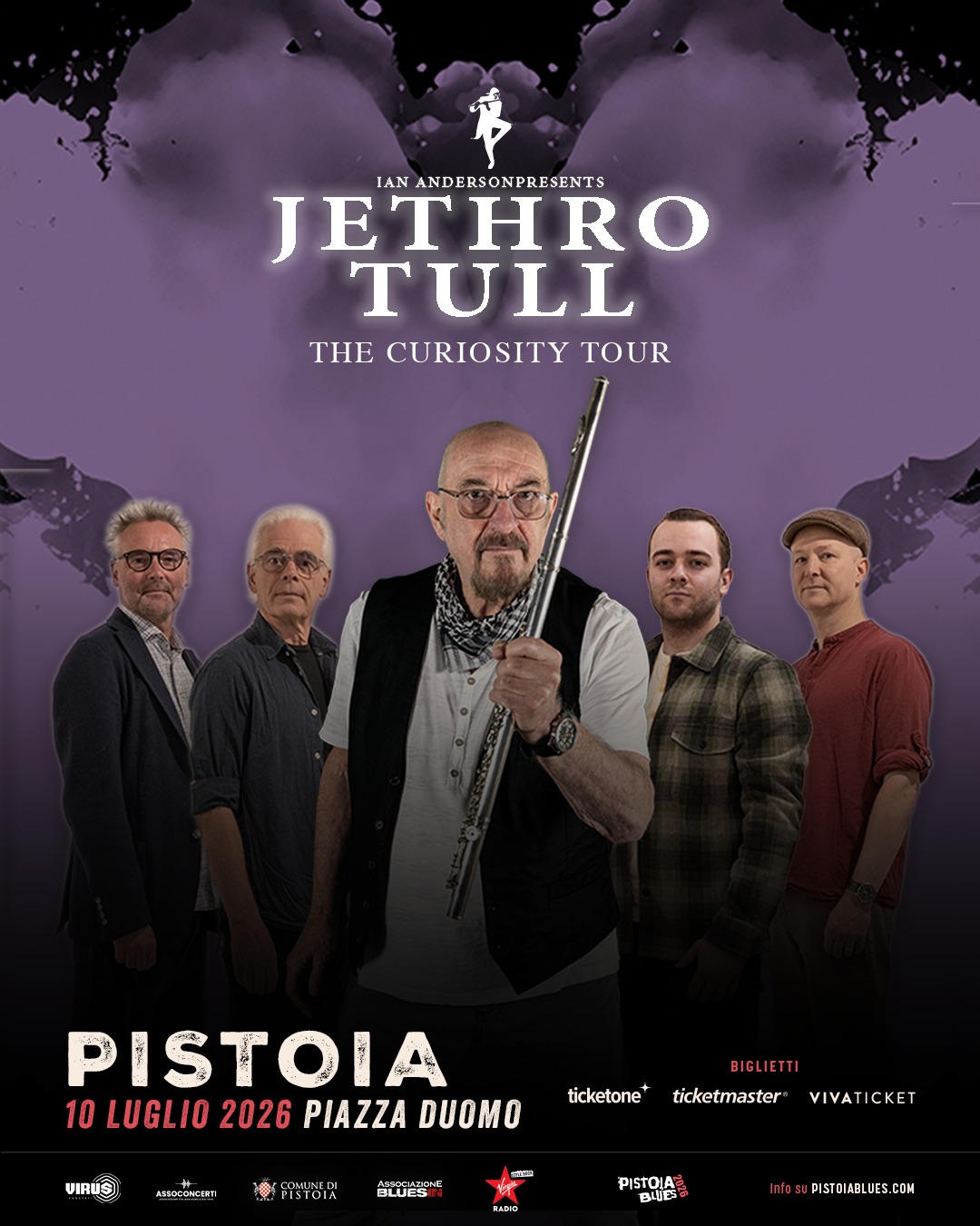 Jethro Tull. Per la leggendaria prog band si tratta della quarta partecipazione al festival (1999, 2003 e 2008). Porterà a Pistoia Blues il suo “Curiosity Tour” con il nuovo album “Curious Ruminant”, composto da nove nuovi brani di lunghezza variabile da due minuti e mezzo a quasi diciassette minuti. Tra i musicisti presenti figurano l’ex tastierista Andrew Giddings e il batterista James Duncan, oltre agli attuali membri della band David Goodier, John O’Hara, Scott Hammond e, al suo debutto discografico con il gruppo, il chitarrista Jack Clark.