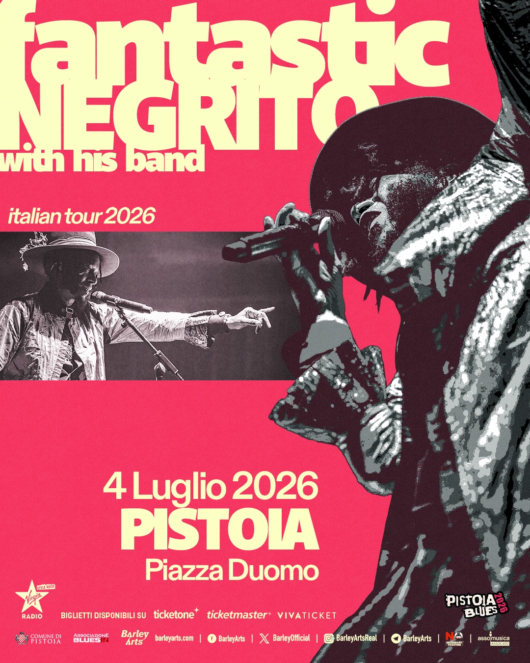 Fantastic Negrito. Una delle voci più sincere e potenti del panorama contemporaneo. Si è affermato come interprete dallo stile unico, contaminando blues, rock, funk, soul e radici afroamericane. Nella sua carriera ha conquistato tre Grammy consecutivi nella categoria Best Contemporary Blues Album — per The Last Days of Oakland (2016); Please Don’t Be Dead (2018); Have You Lost Your Mind Yet? (2020).