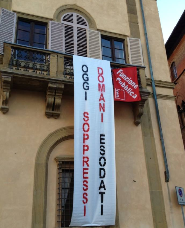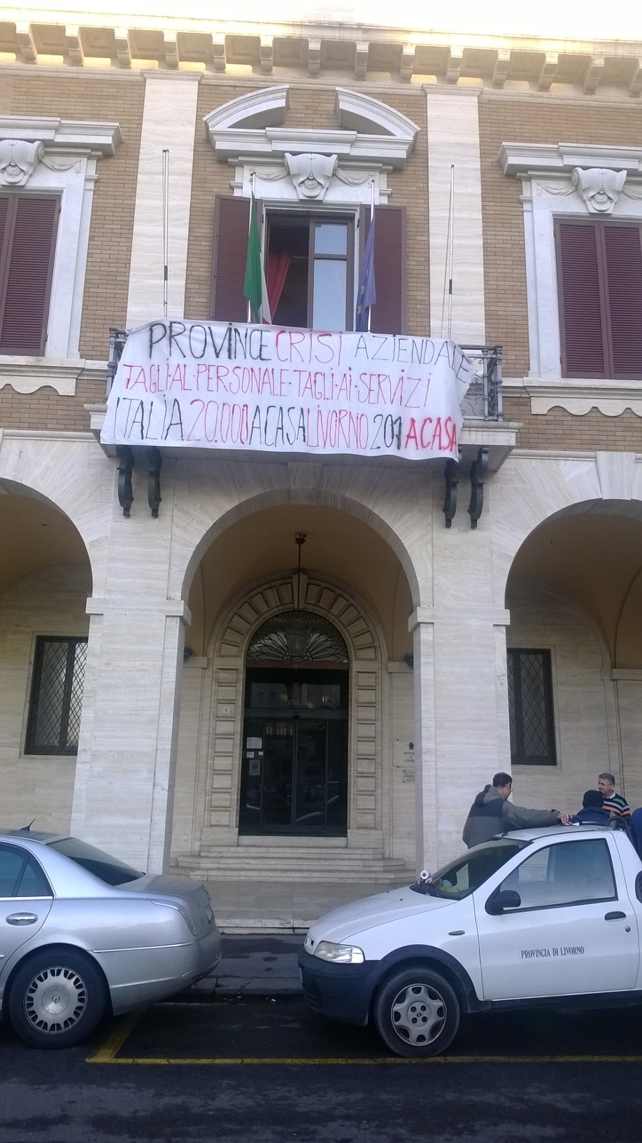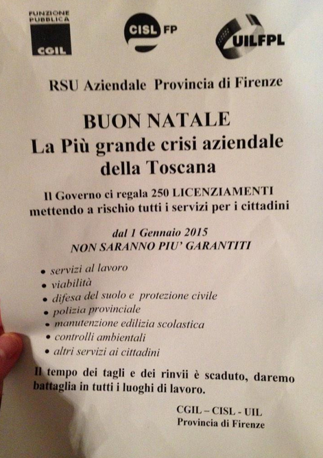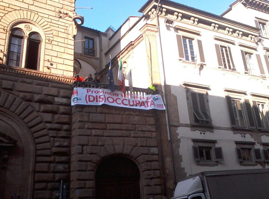 Province della Toscana occupate dai propri dipendenti che protestano contro la riforma Delrio per il riordino degli enti locali. Dopo sostanziosi tagli alle risorse, a rischio il futuro di migliaia di dipendenti. E la grande incertezza sul futuro dei lavoratori mette a rischio i servizi ai cittadini.