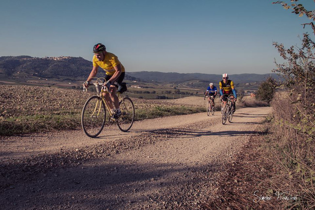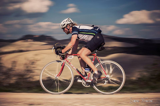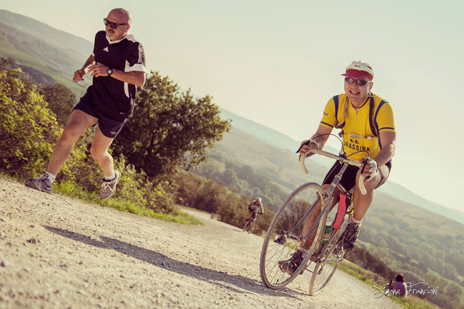 Ci sono scatti che riportano ad altri tempi e a valori profondi. Ci sono scatti sui pedali e scatti fotografici in grado di evocare o ritrarre fatica e sudore, rispetto e convivialità. Sono le immagini catturate da Simone Francioni durante l’Eroica, la celebre corsa ciclistica che ha visto 6mila partecipanti da ogni parte del mondo attraversare in sella gli scorci più belli delle Crete Senesi.