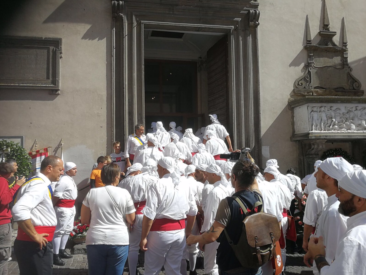 Il rituale Un rituale a cui ogni anno prendono parte migliaia di persone e ospiti come il giornalista Pierluigi Battista e la showgirl Antonella Elia. Fin dal pomeriggio i Facchini, vestiti nella tradizionale divisa bianca con fascia rossa alla vita (il bianco simboleggia la purezza di spirito della patrona, il rosso i cardinali che nel 1258 traslarono il suo corpo), si recano in Comune dove ricevono i saluti delle autorità cittadine, poi vanno in visita a sette chiese del centro, infine in ritiro al convento dei Cappuccini, dove il capofacchino impartisce loro le ultime indicazioni sul trasporto. Verso le ore 20, preceduti da una banda musicale che intona il loro inno (intitolato Quella sera del 3), partendo dal Santuario di Santa Rosa percorrono a ritroso il tragitto della Macchina, acclamati dalla folla, fino a raggiungere la Chiesa di S. Sisto accanto alla “mossa”. Qui viene impartita loro dal vescovo la cosiddetta benedizione “in articulo mortis”, che prende in considerazione eventuali incidenti e pericoli. E poi si parte. Una festa che negli anni si è saputa imporre all’attenzione del grande pubblico e che è rientrata nella rete delle grandi macchine a spalla italiane. Dal 2013 è stata inserita nel Patrimonio orale e immateriale dell’Umanità Unesco.
