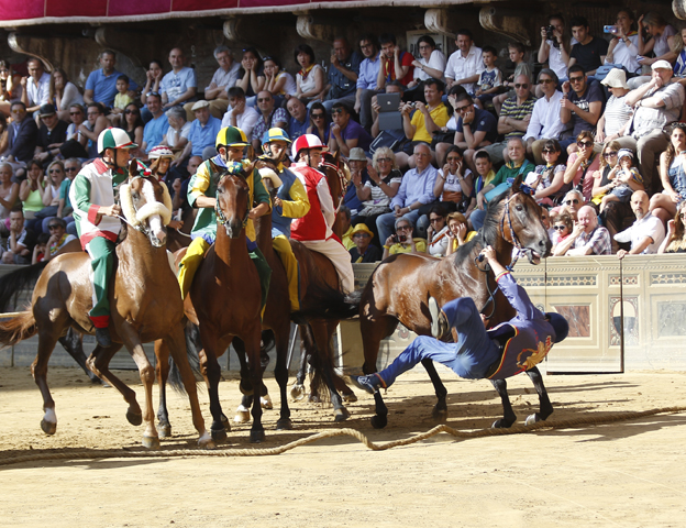 E’ stata la contrada dell’Istrice a vincere la quarta prova del Palio di Siena in vista della Carriera del 2 luglio. Segnali di miglioramento alla partenza per il cavallo del Nicchio, Quadrivia, nei giorni recalcitrante all’ingresso tra i canapi. Al momento dell’ingresso dell’Istrice dalla posizione di rincorsa, sono state Drago e Oca ad avere il miglior spunto in partenza, con quest’ultima che ha condotto per i primi due giri. Nell’ultimo giro di Piazza del Campo, al primo posto si sono alternate prima la Giraffa, poi l’Istrice che ha concluso per primo la prova. L’ordine di ingresso dei cavalli tra i canapi era inverso rispetto a quello della terza che seguiva l’assegnazione dei cavalli alle contrade, per cui: Lupa, Chiocciola, Drago, Aquila, Nicchio, Giraffa, Oca, Bruco, Tartuca e Istrice di rincorsa. Tutte confermate le accoppiate cavallo-fantino nelle contrade. Questa sera alle 19.45 si correrà la prova generale con ordine di ingresso alla mossa che seguirà il numero di orecchio dei cavalli al momento dell’assegnazione a sorte alle contrade, e quindi: Oca, Lupa, Drago, Nicchio, Bruco, Aquila, Tartuca, Istrice, Chiocciola e Giraffa di rincorsa.