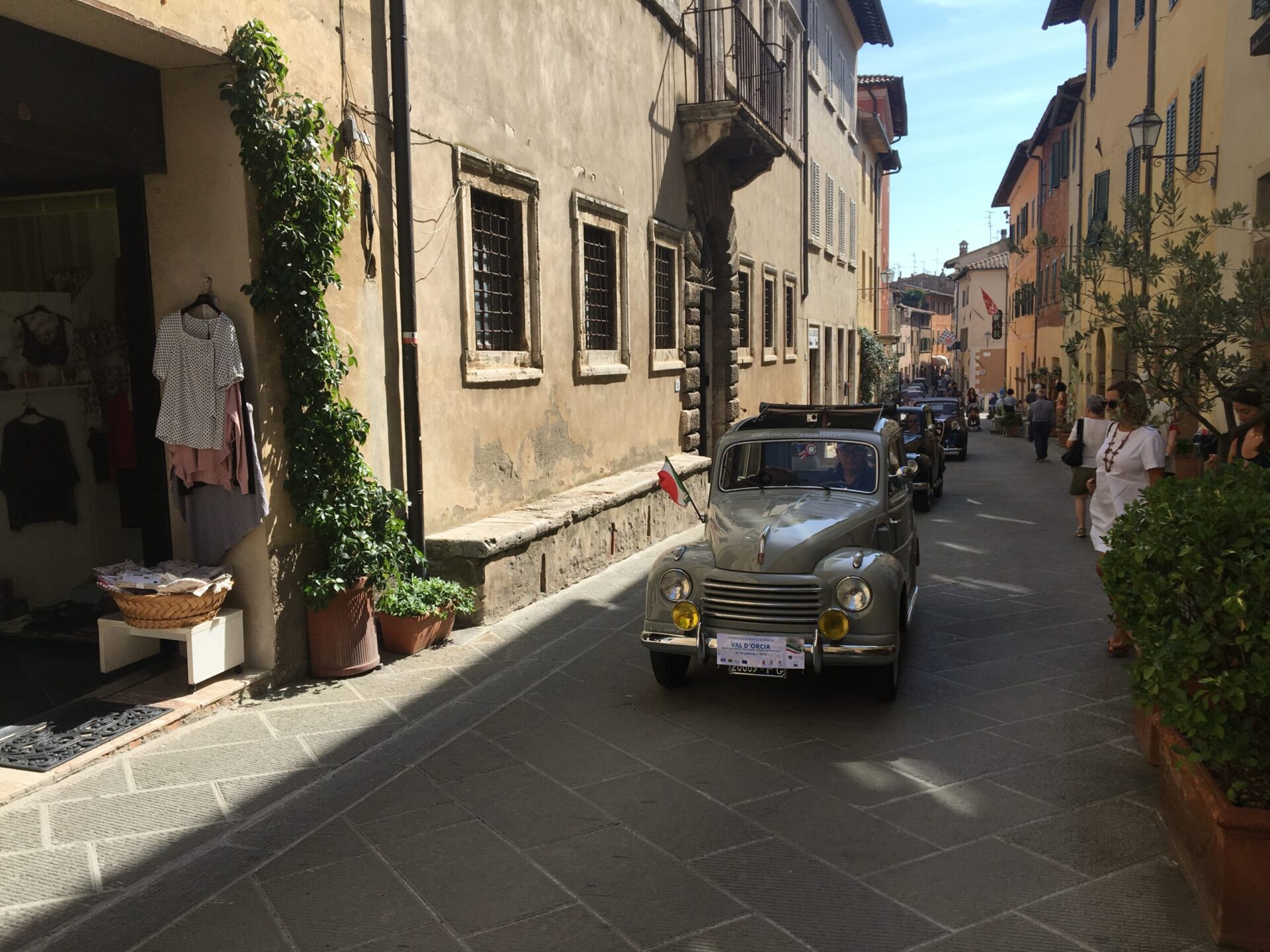Un viaggio tra i paesaggi mozzafiato della Valdorcia, patrimonio Unesco. A compierlo, decine di “Topolino” dell’Autoclub Italia che sabato e domenica hanno attraversato strade e borghi di questo rinomato angolo di Toscana tra l’ammirazione dei cittadini e degli increduli turisti che hanno fotografato e ripreso ogni attimo della sfilata. Nella tappa a San Quirico d’Orcia (a cui le foto di Lorenzo Benocci fanno riferimento) le mitiche auto d’epoca così simili al personaggio creato dalla matita di Walt Disney, hanno sfilato in via Dante e Piazza della Libertà prima di proseguire alla volta di Bagno Vignoni.