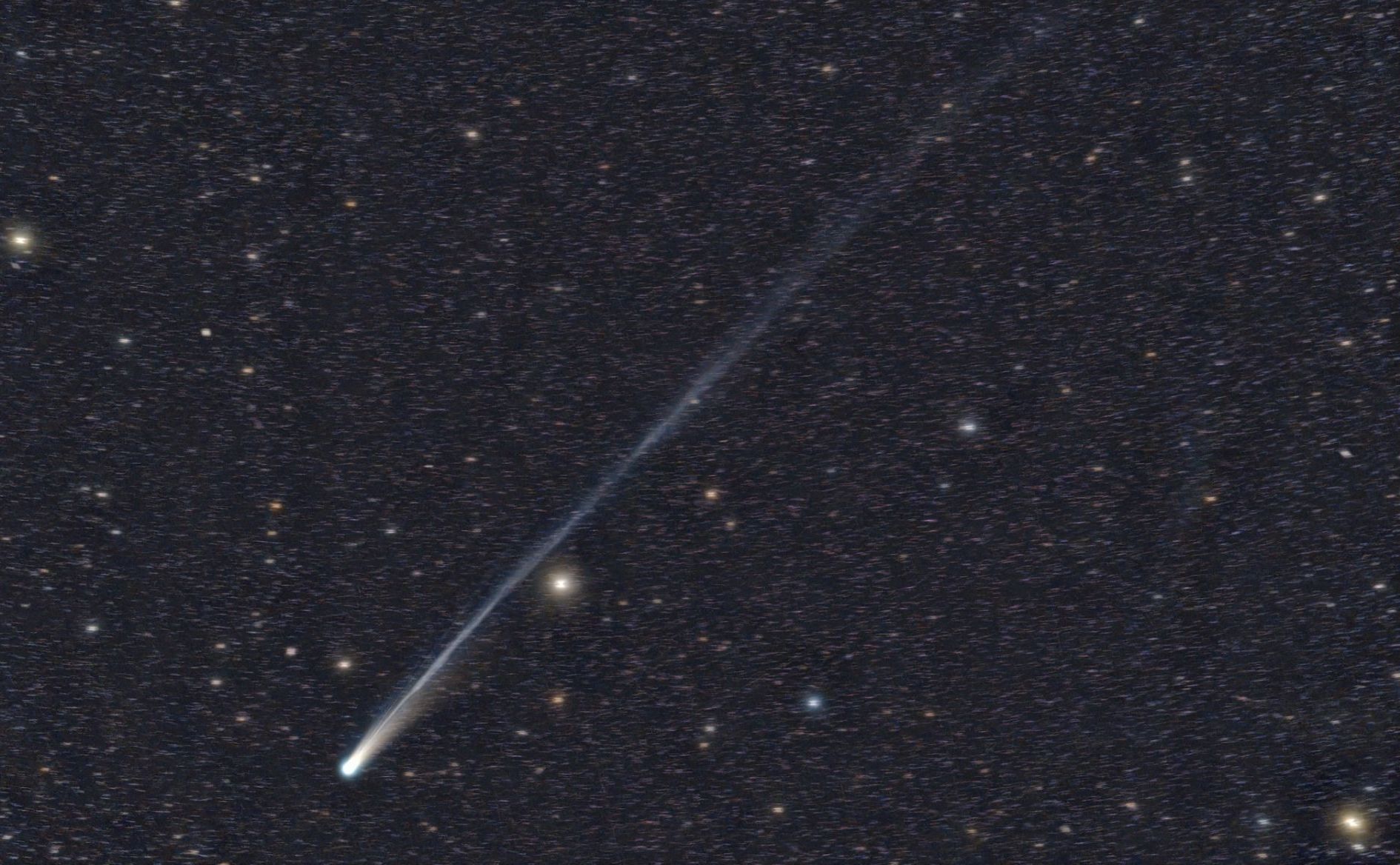 La meteora ha attraversato la stessa regione di cielo occupata dalla cometa, creando un suggestivo effetto prospettico: la scia rossastra lasciata dalla meteora sembra avvolgersi e intrecciarsi alla lunga coda della cometa, nonostante questa si trovi a circa 100 milioni di chilometri di distanza. L’immagine è stata realizzata grazie agli strumenti del Virtual Telescope installati a Manciano (Grosseto), luogo noto per il cielo più scuro dell’Italia continentale.
