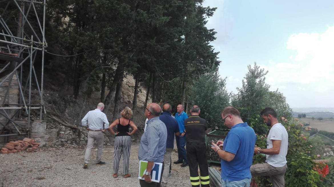 Nella giornata di martedì 3 luglio, presso il cantiere istituito a seguito del crollo di un tratto delle mura medievali di San Gimignano, si è tenuto un sopralluogo congiunto tra la Regione Toscana, rappresentata dall’Ing. Giovanni Massini Responsabile della Direzione Difesa del Suolo e Protezione Civile della Regione Toscana, la Soprintendenza Archeologia, Belle Arti e Paesaggio di Siena, Grosseto e Arezzo con la Soprintendente Arch. Anna Di Bene affiancata dai funzionari Arch. Donatella Grifo e dal Geom. Mauro Marchetti, dal Comune di San Gimignano con il Sindaco Giacomo Bassi, insieme ai tecnici comunali Arch. Alberto Sardelli e Geom. Fabrizio Valleggi, dai Vigili del Fuoco di Siena con l’Ispettore Maurizio Meniconi e dalla Ditta Marionni s.r.l., esecutrice dei lavori, con i liberi professionisti incaricati. Durante il sopralluogo i presenti hanno condiviso il fatto che la prima fase dei lavori, nella quale sono stati messi in sicurezza i tronconi delle mura, ripulita l’intera area, recuperato il materiale lapideo originale, allestito il “castello” di cantiere e la viabilità di servizio, si è sostanzialmente conclusa e che ora si può passare alla ricostruzione del tratto di mura crollato, secondo la progettazione, in corso di ultimazione da parte dei tecnici del Genio Civile Regionale, realizzata anche sulla base delle linee guida condivise con la Soprintendenza.