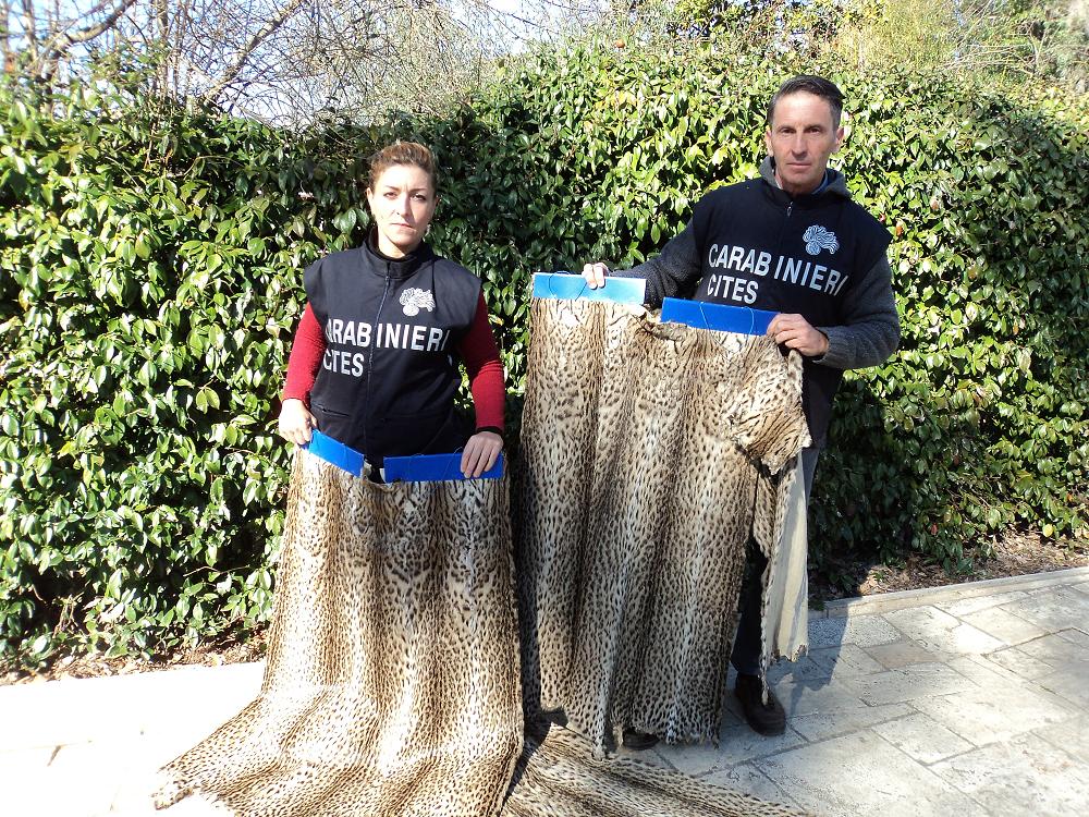 Specie protette I militari hanno rinvenuto in negozio e sequestrato due pelli di lupo siberiano, due di leopardo, dieci di ocelot e una trentina di gatto selvatico di Geoffroy (questi ultime due specie sono felini sudamericani), considerate specie protette. La normativa ne vieta l’acquisto, l’offerta di acquisto, l’acquisizione in qualunque forma a fini commerciali, l’esposizione in pubblico per fini commerciali, l’uso a scopo di lucro e l’alienazione, nonché la detenzione, l’offerta o il trasporto a fini di alienazione, di esemplari delle specie maggiormente minacciate di estinzione, il cui commercio è dunque regolato in modo molto restrittivo Le pelli rinvenute all’interno della ditta erano state acquistate e in parte rivendute, senza la prescritta certificazione CITES, che ne legittima la detenzione. Si tratta di pelli pregiate del valore stimato di decine di migliaia di euro, che interessano esclusivamente il mercato del lusso.