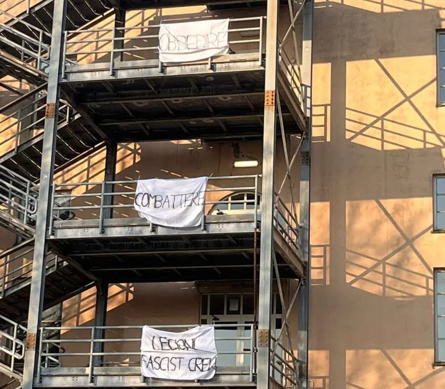 Lunedì mattina, studenti e personale si sono trovati di fronte a striscioni appesi su ogni piano delle scale di emergenza esterne, con il motto “Credere, obbedire, combattere”, slogan iconico del regime mussoliniano che sintetizzava fedeltà e disciplina cieca. L’ultimo striscione recava la firma “Cecioni fascist crew”, mentre sul pavimento del piano terra, nella zona delle scale antincendio, è apparsa la tag “Cfc”. Un volantino con la stessa firma è stato lasciato sul posto.